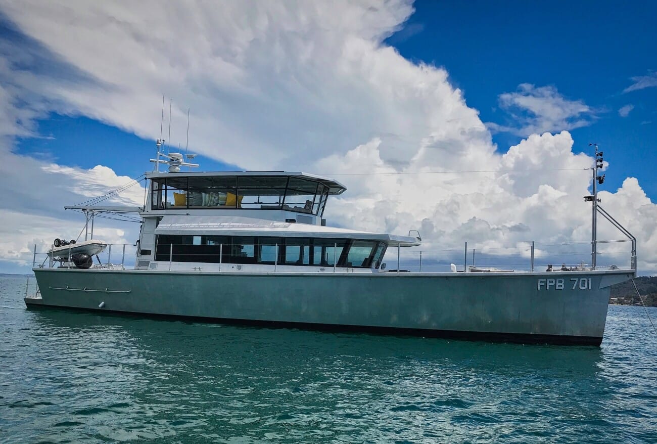 When it comes to owner-operated explorers under 80’/24M, few yachts rival BUFFALO NICKEL (78’/24M). Built in aluminum by the highly respected Circa Marine Industries Shipyard in Auckland, New Zealand, this FPB 70 was crafted with long-distance cruising in mind, incorporating efficiency, speed, and safety at every turn. BUFFALO NICKEL was designed by world-renowned sailor and multi-circumnavigator Steve Dashew, featuring a custom interior by Sylvia Bolton.