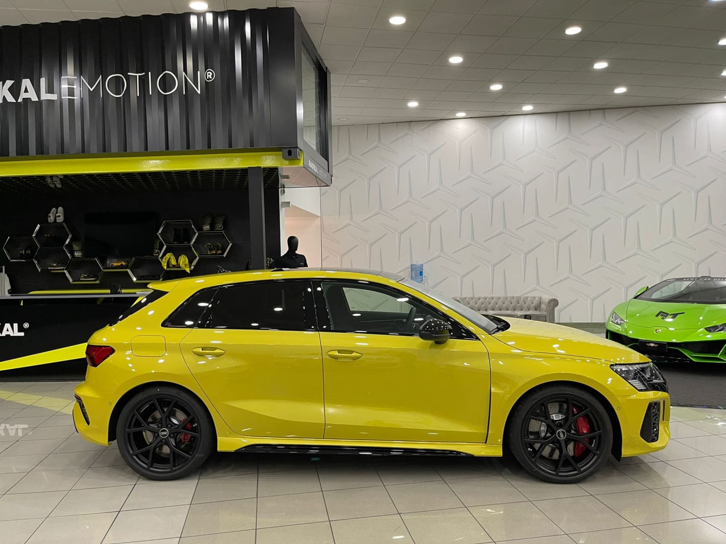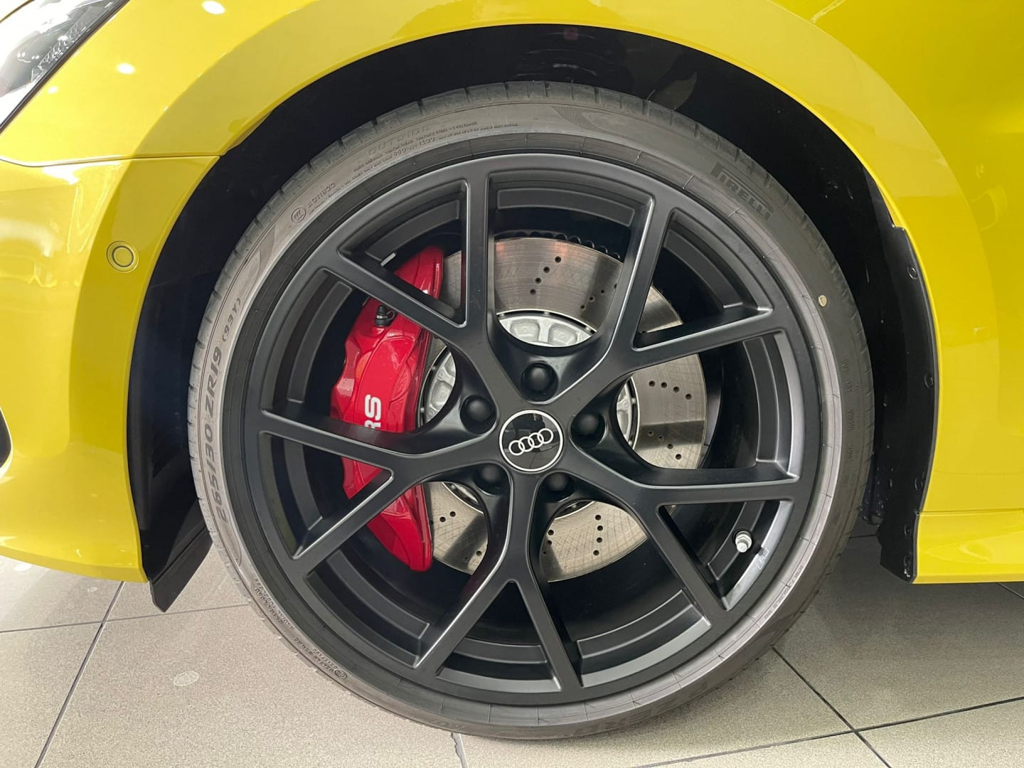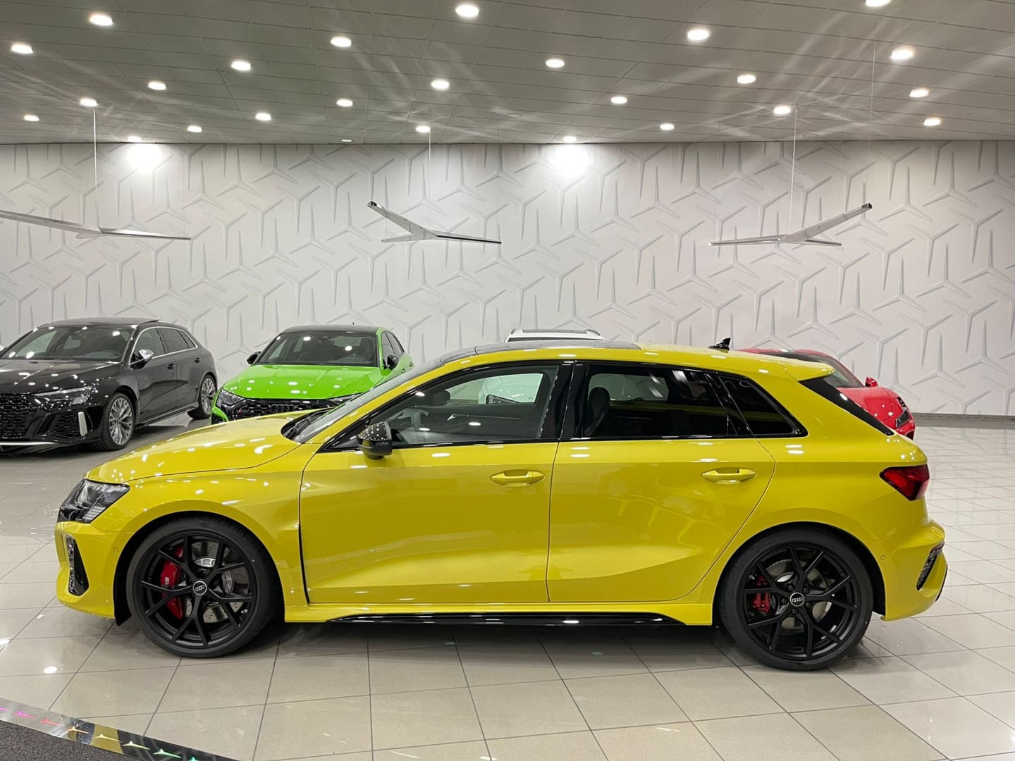 ¡Increíble Audi RS3 SPORTBACK amarillo nuevo a estrenar en las instalaciones de Radikal Cars! Equipamiento: Nuevo a estrenar Garantía oficial Audi 2022 Cuero napa fina con grabado RS y pespunte de nido de abeja Volante de cuero de 3 radios con multifunción plus y levas de cambio Asientos delanteros regulables eléctricamente asientos con calefacción en la parte delantera Retrovisor interior antideslumbrante automático, sin marco Soporte lumbar de 4 vías para los asientos delanteros