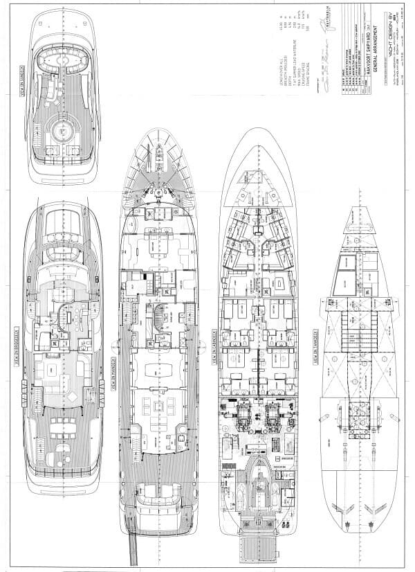 With a steel hull and aluminum superstructure, AWATEA was designed by Cor de Rover with naval architecture by Diana Yacht Design while Felix Buytendijk was responsible for the interior design.