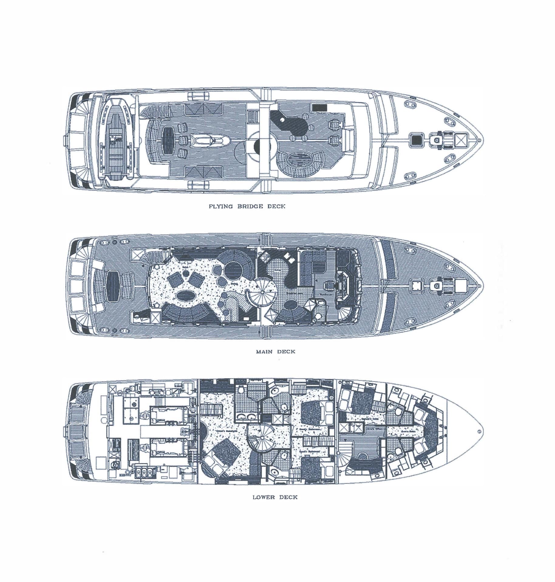She can accommodate up to 6 guests across 3 staterooms, including a Master Suite and two guest staterooms, all with ensuite bathrooms.
