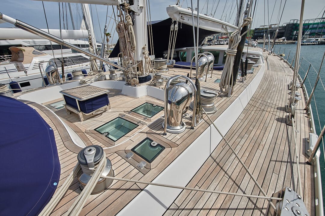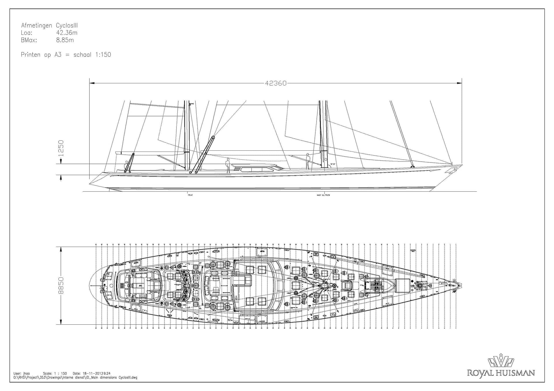 CYCLOS III is a 42.4M/138’96” sailing yacht launched in 1990 by the pedigree Royal Huisman shipyard. Designed by Ron Holland with interiors by Andrew Winch, she blends classic elegance with modern performance.