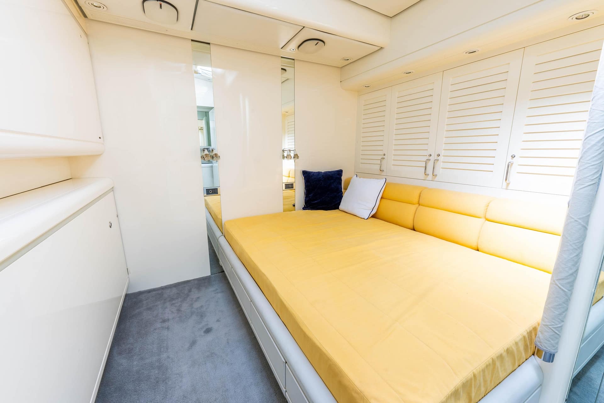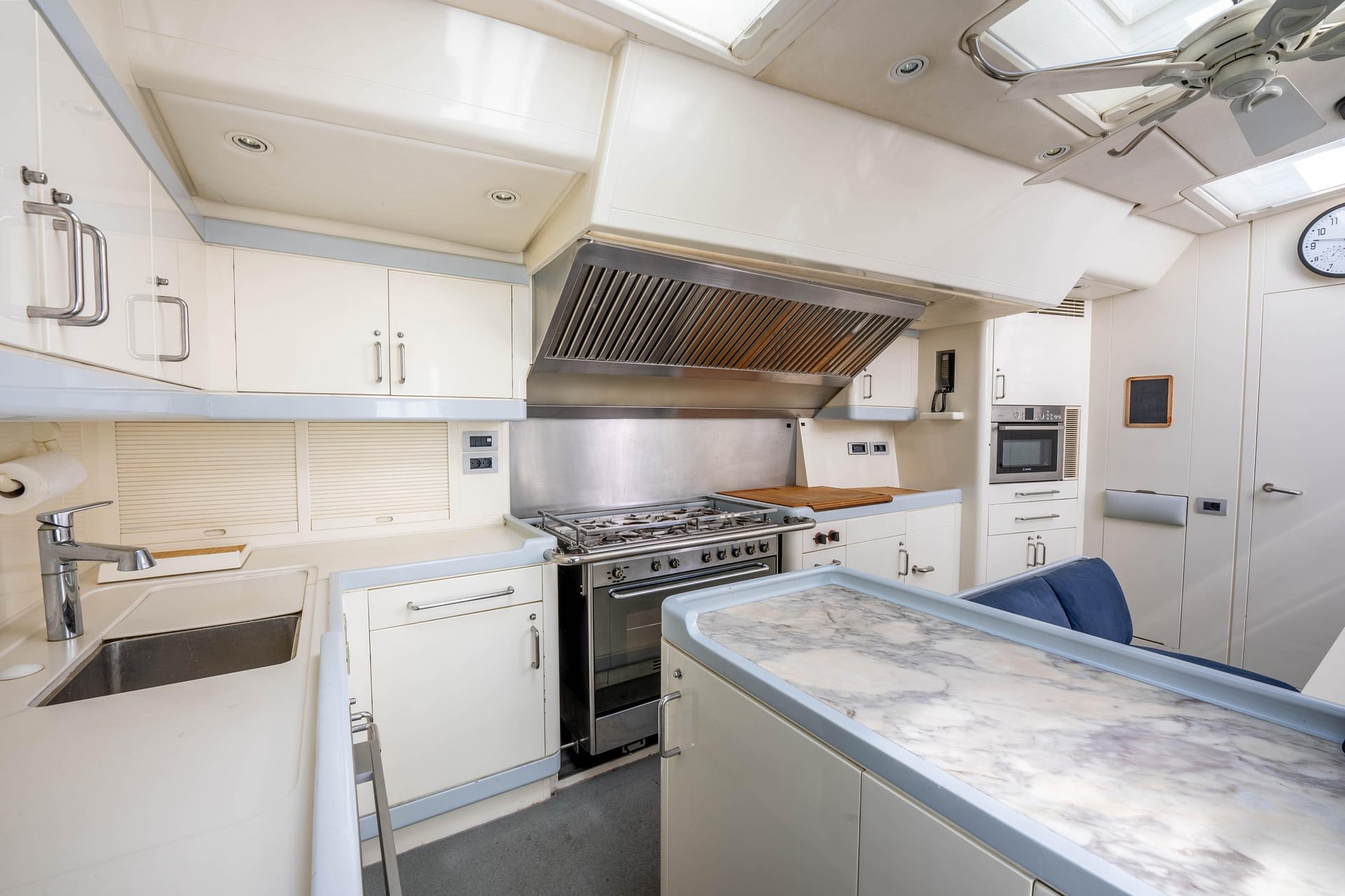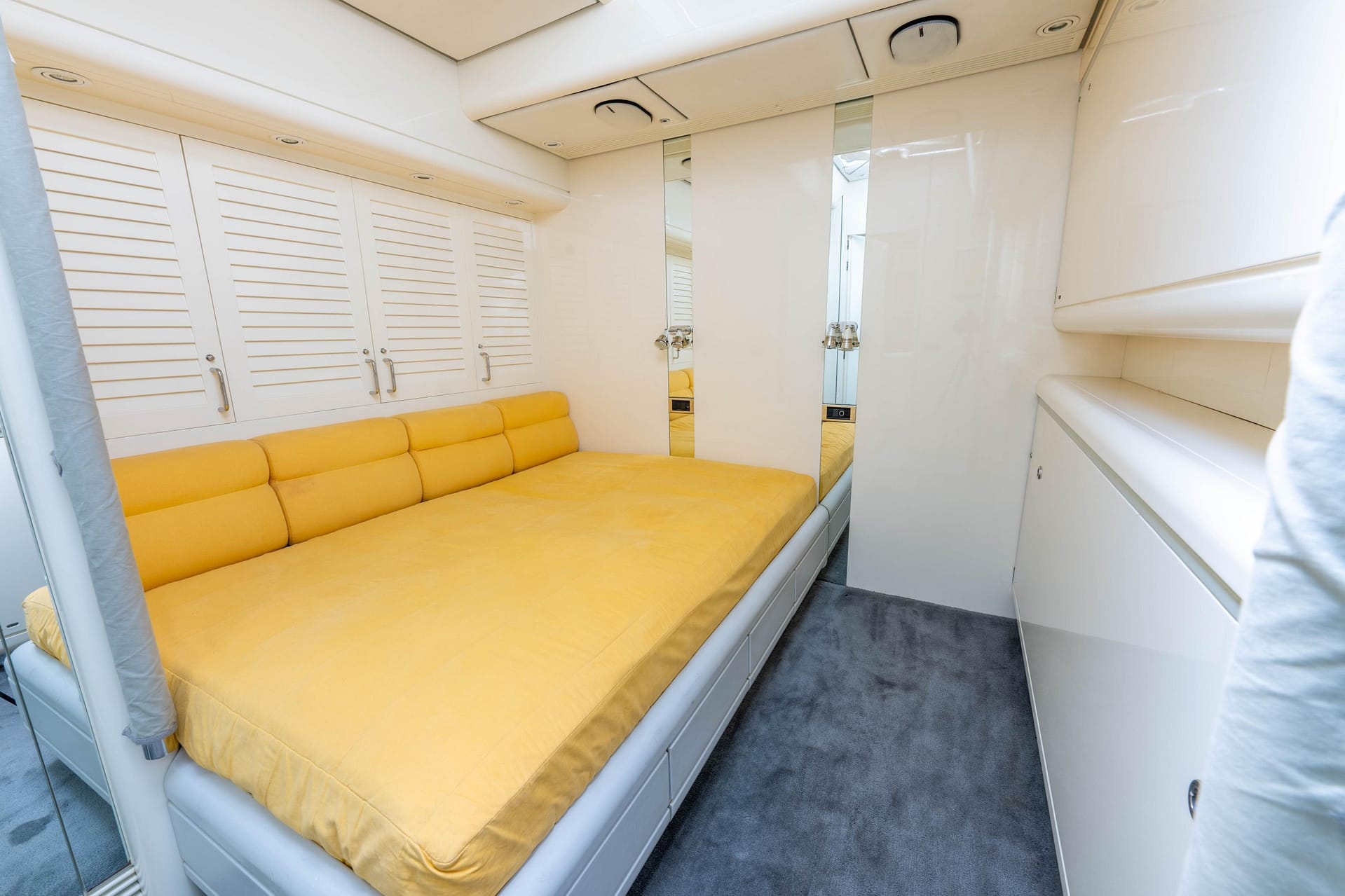 With a gross tonnage of 210 GT, she offers remarkable volume for a yacht of her size. Her high-gloss, wood-free interior offers a light-filled ambiance, accommodating up to 10 guests across three staterooms. The layout includes a full-beam Owner’s Suite and two guest staterooms. Crew quarters for five ensure smooth operations and excellent service.