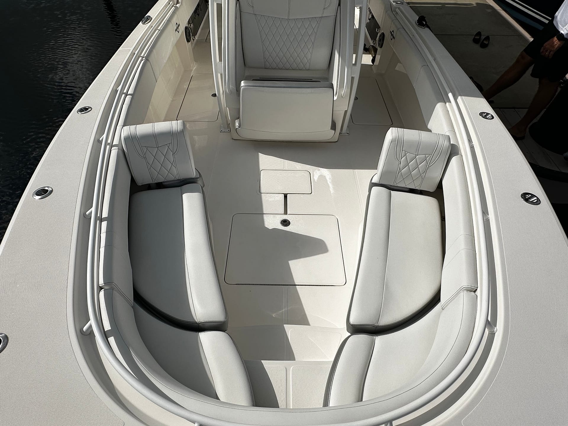 Powered by triple Mercury Verado 350hp engines, she offers offers both power and style. This captain-maintained boat comes equipped with underwater lights, a premium JL audio system, and low engine hours, providing an unmatched combination of advanced features and dependable performance on every outing.
