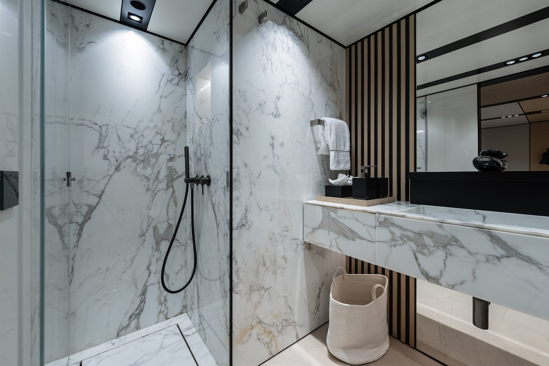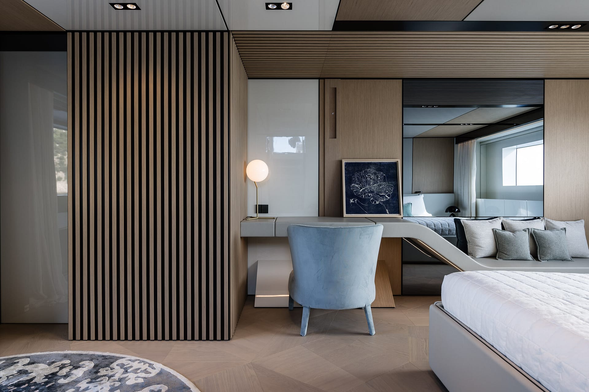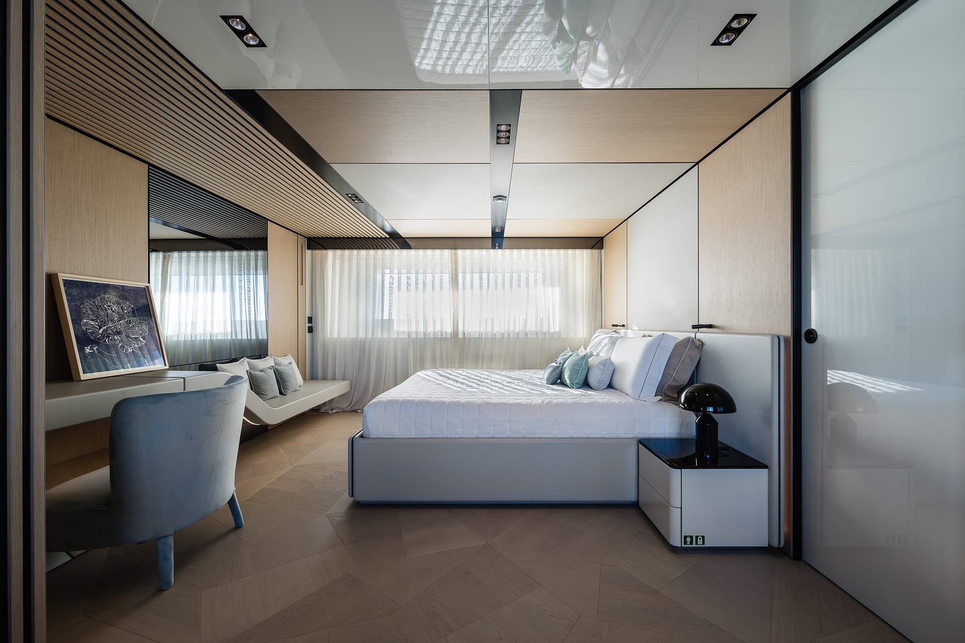 Enrico Gobbi’s artistic vision brings life to the sleek exterior lines of the ISA GT 45M, while Luca Dini infuses warmth and elegance into the custom interior. Every corner reveals meticulous attention to detail, from the carefully chosen materials to the sumptuous furnishings. Each space has been thoughtfully designed to create a harmonious and elegant atmosphere, ensuring a truly memorable experience.