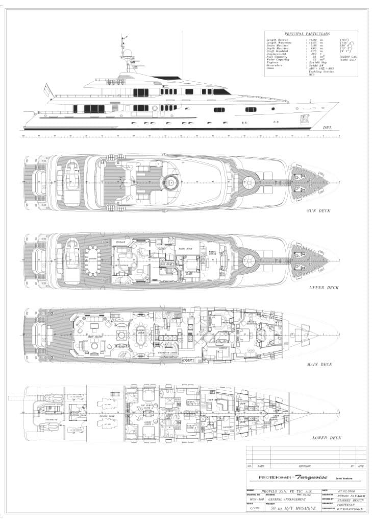 MOSAIQUE is a full displacement yacht built by Proteksan Turquoise, now Turquoise Yachts, on their very successful 50m/164′ series platform.