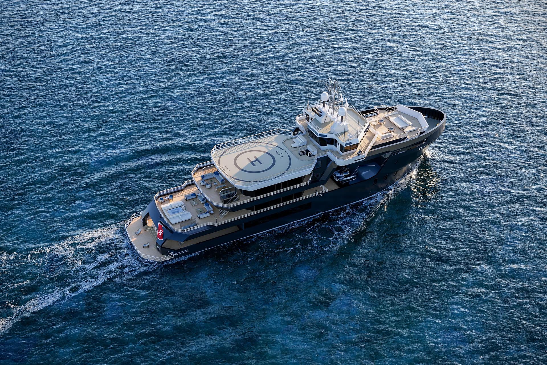 Originally an offshore rescue vessel, MASTER (70M/228′) is being transformed by ICON Yachts, world-famous for its pioneering conversions, into a 2,801GT masterpiece designed for global cruising. Powered by a hybrid diesel-electric system with Voith eVSP propulsion, MASTER offers exceptional maneuverability, low noise levels and low emissions and a 6,700nm range. Compliance with IMO Tier III regulations (Tier IV ready) and Polar Code C certification enable expeditionary cruising to even the most remote icy destinations.