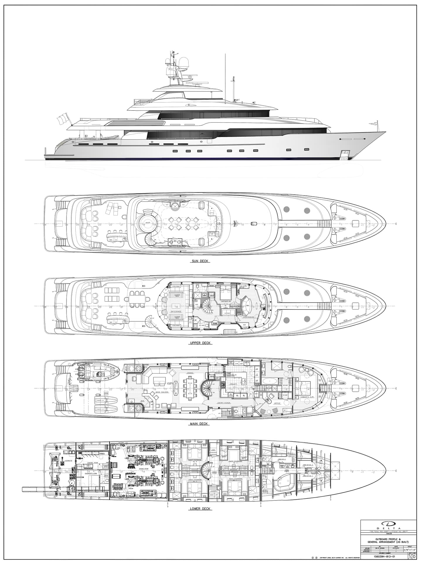 As a leading U.S. shipyard, Delta is renowned for its exceptional engineering and construction quality. ROCHADE, built to Lloyd’s Register Class, guarantees an unmatched experience on the water and is a proven world cruiser. Powered by twin MTU 4000 engines, she cruises comfortably at 13 knots and reaches a maximum speed of 21 knots. ROCHADE is also equipped with Quantum Zero Speed stabilizers, ensuring enhanced stability and a smooth journey both at anchor and underway. Additionally, her remarkably shallow draft of just 2.5M (8′) from the baseline enables access to even the most secluded coastal areas and hidden coves.