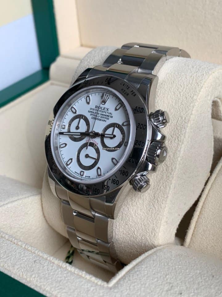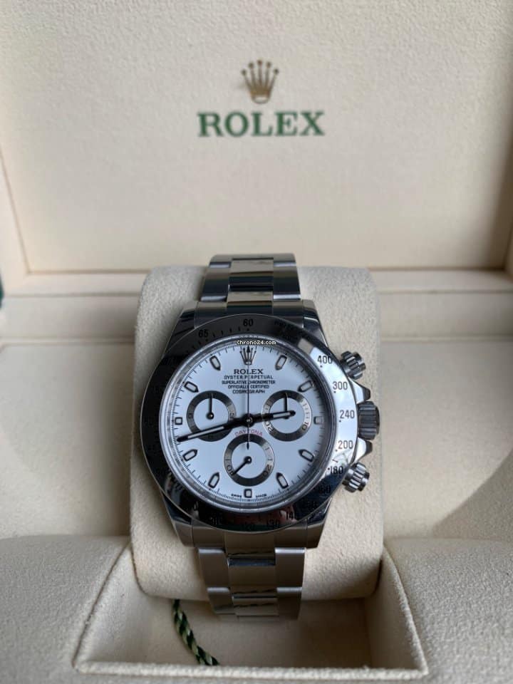 Rolex Daytona 116520 APH chronograph steel, year of production 2015, steel bezel scale graduated 400, anti-scratches sapphire crystal, white colour dial, three counters, Chromalight indexes and spheres, automatic mechanical movement, Oystersteel steel bracelet deployante Rolex.