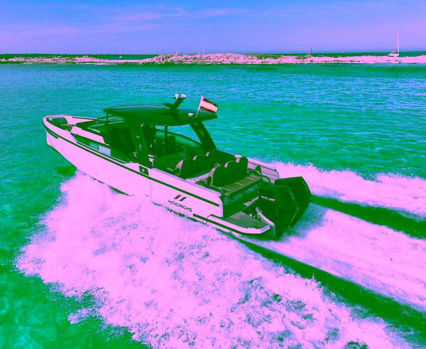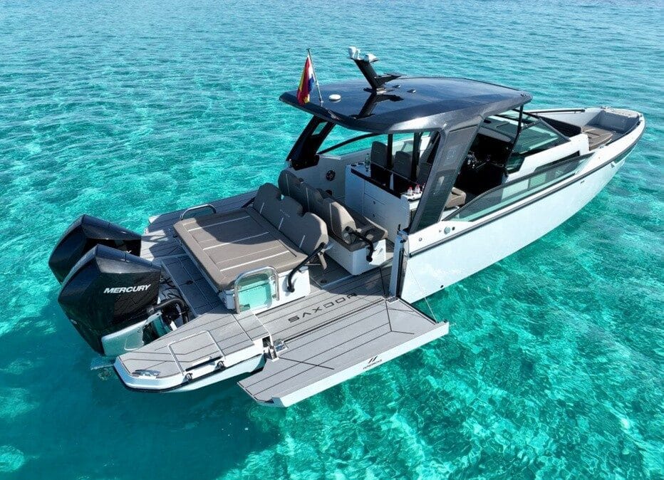 The Saxdor GTO 36FT is built for speed and sleek performance, reaching an exhilarating cruising speed of 55 knots with its twin Mercury 300hp engines. At 36 feet in length, it offers a stylish and agile ride, complete with a WC and two outdoor showers for added comfort during your charter.