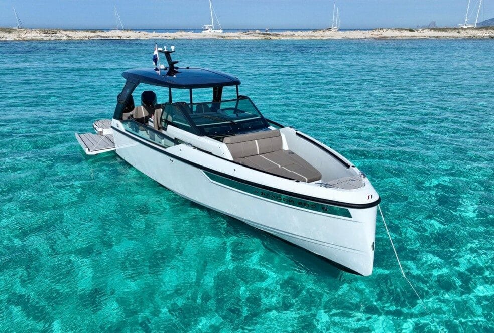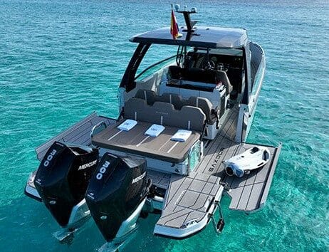 Based at Es Nautic in San Antonio, this vessel blends excitement, comfort, and premium amenities for an unforgettable day on the water.