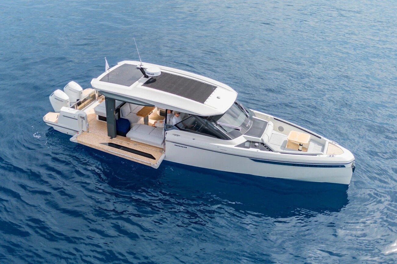 The Saxdor 400 GTO is a cutting-edge 12.8-meter yacht powered by twin Mercury V8 350hp engines, offering thrilling performance with cruising speeds up to 50 knots. With sleek Nordic styling and innovative design, this yacht features a WC with two showers—ideal for refreshing after a day in the water.
