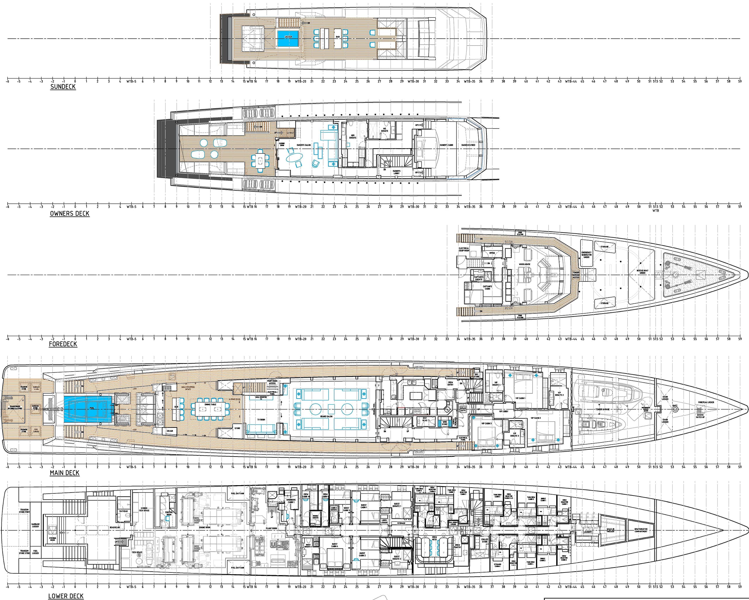 Equipped with a touch-and-go helipad, SILVER EDGE can ensure a swift transition from air to sea in total comfort. Meanwhile, on the sundeck, guests can indulge in supreme luxury with plush sun pads, a central Jacuzzi, and a semi-covered dining area, perfect for evenings under the stars.