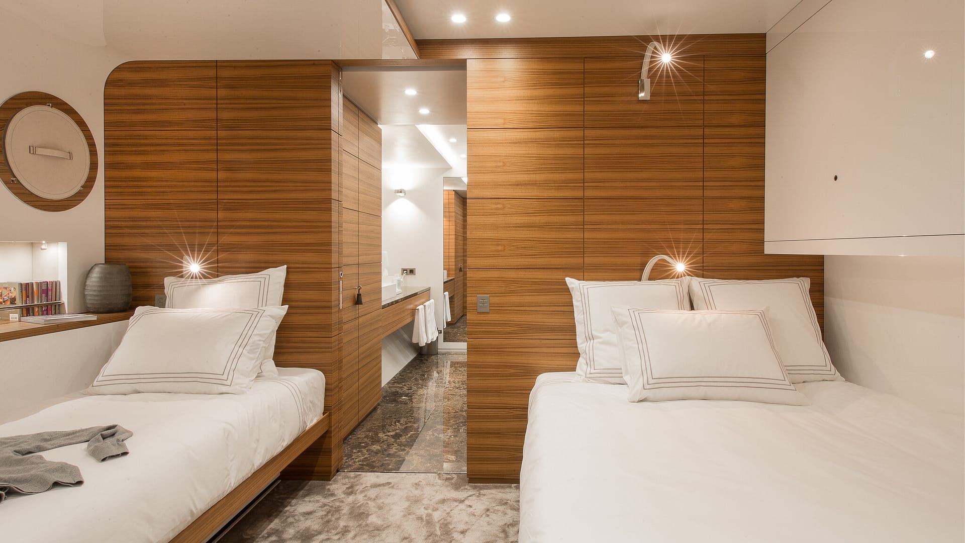 The interior of SILVER EDGE awaits the discerning touch of her new Owner to create a truly personalized finish.