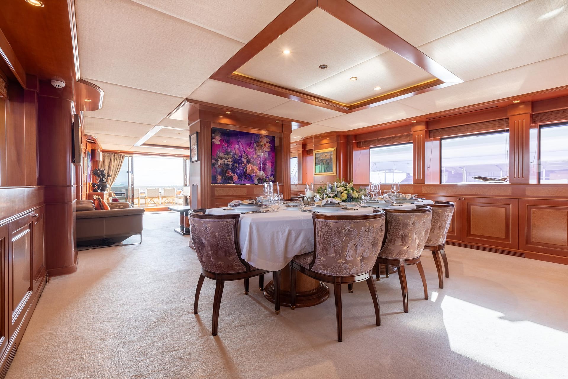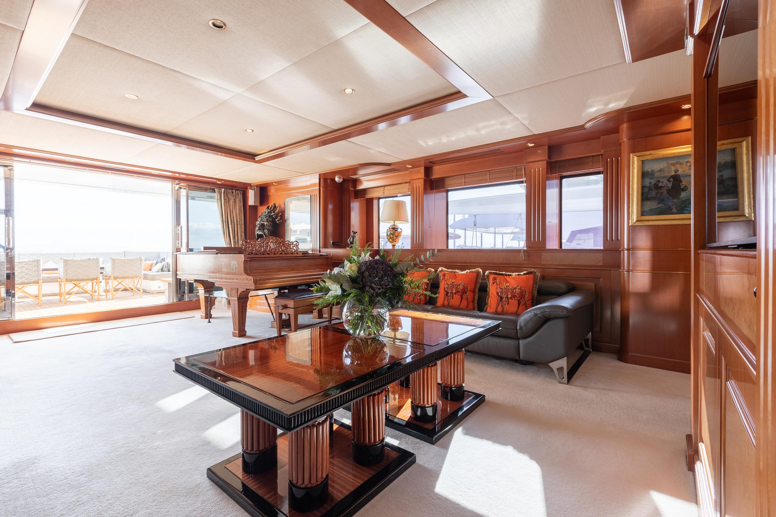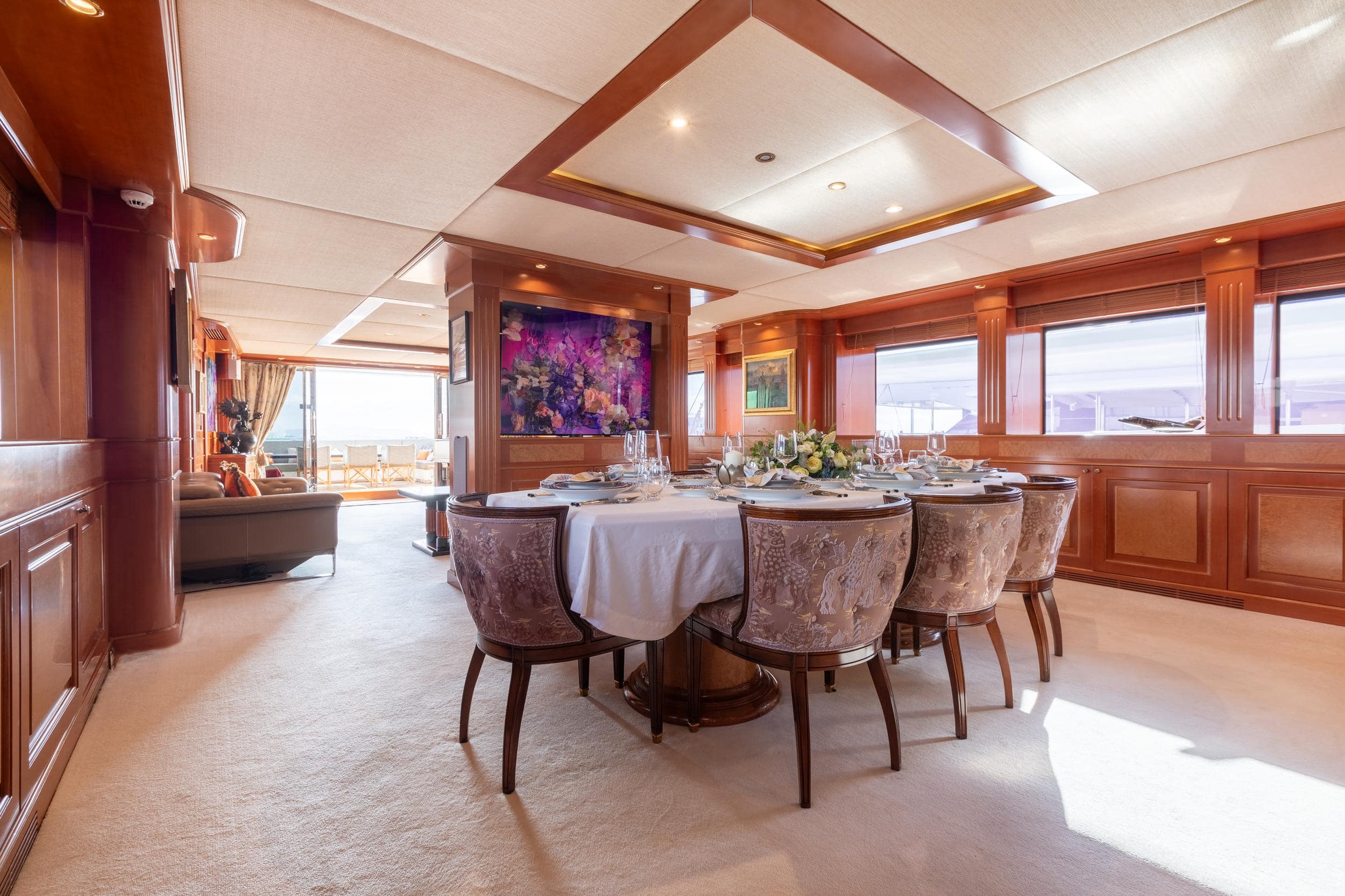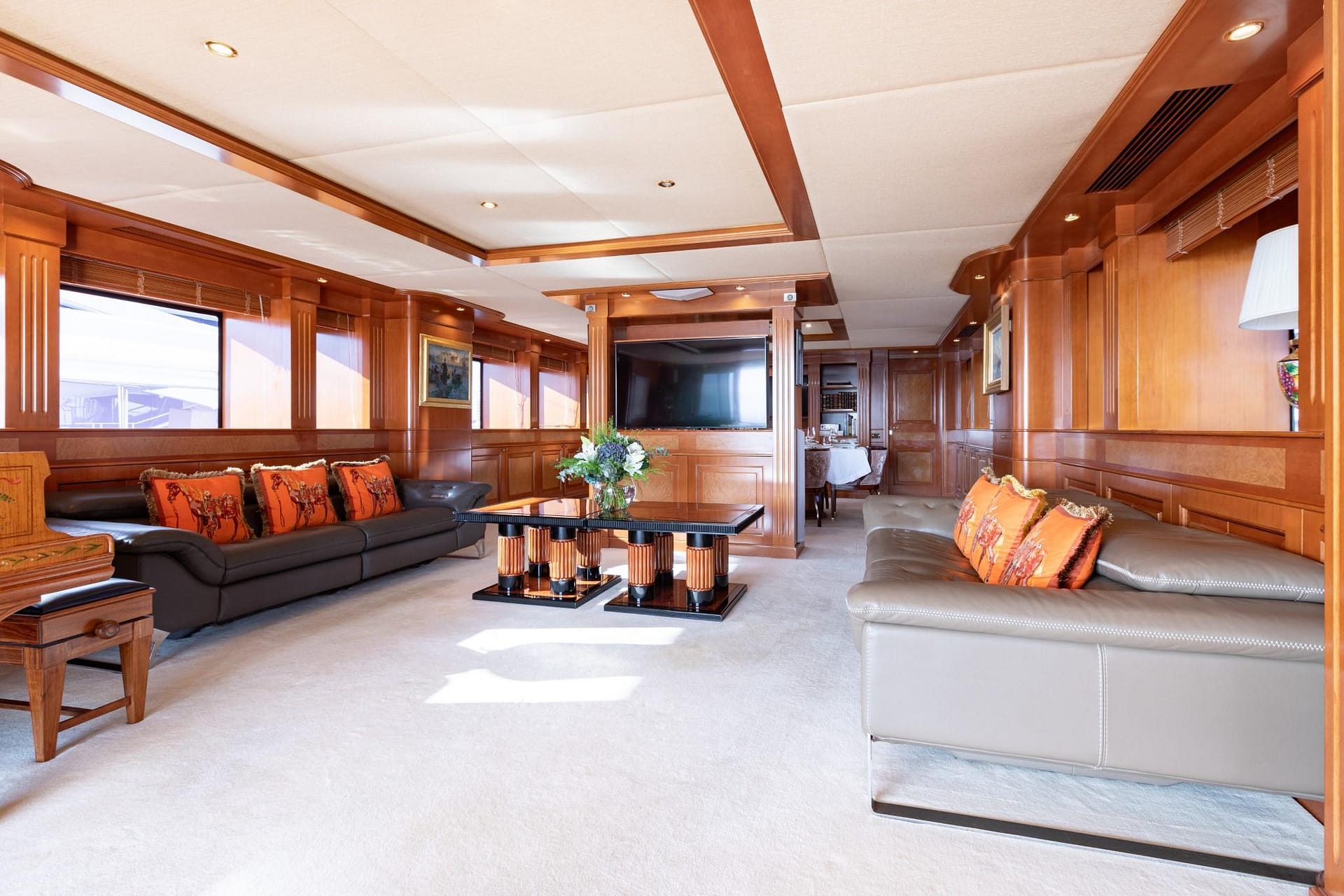 With a gross tonnage of 333 GT, her spacious interior features a large main salon and a formal main-deck dining space. On the upper deck, a large salon creates an inviting atmosphere for entertaining and relaxing.