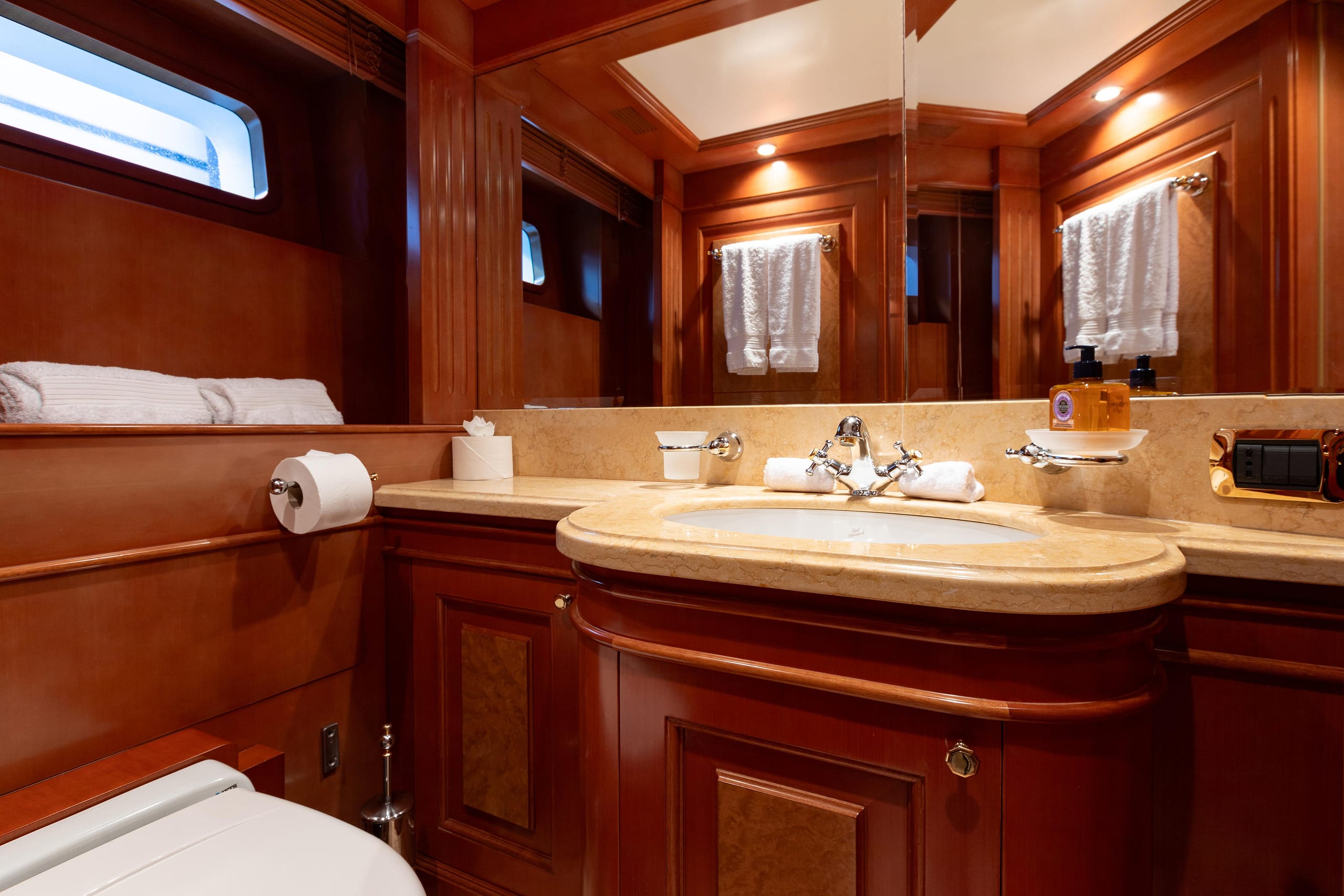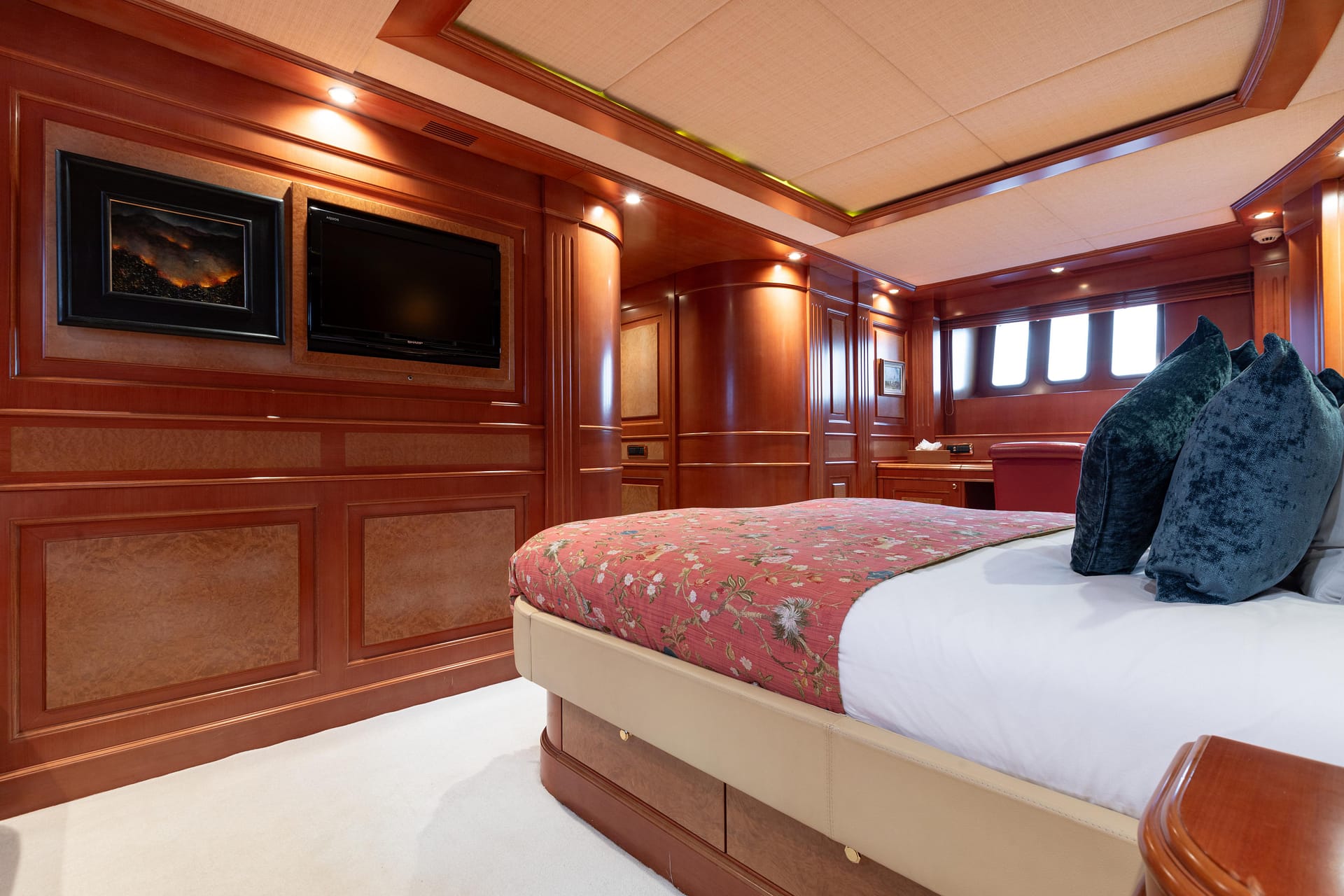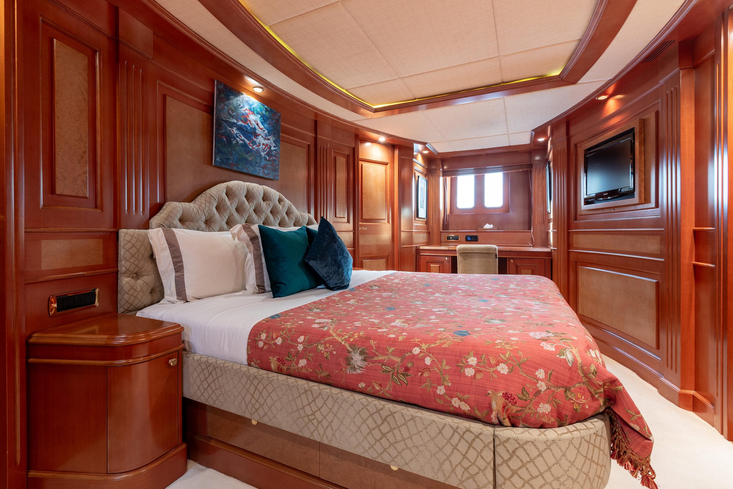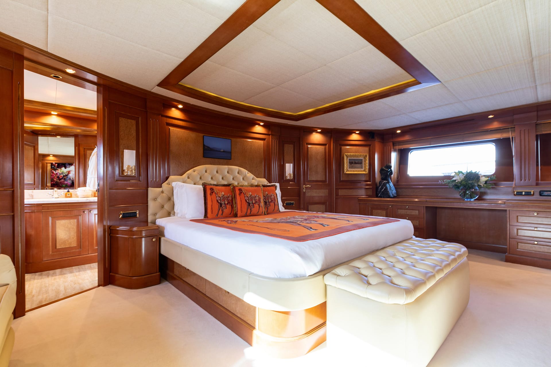 ULYSSES comfortably accommodates up to 10 guests across 5 staterooms, including a full-beam Master Suite on the main deck, two VIP staterooms, and two twin staterooms on the lower deck.