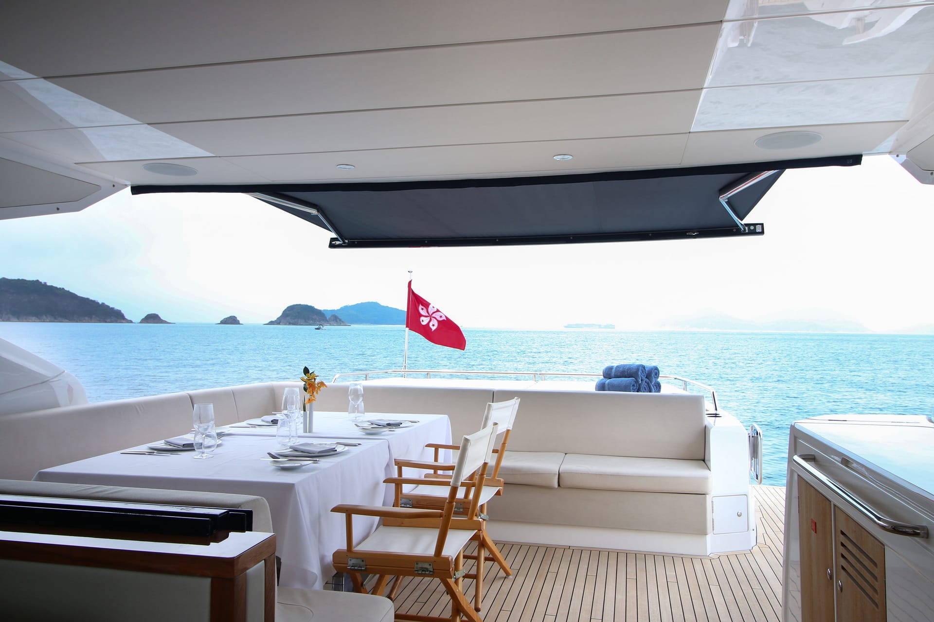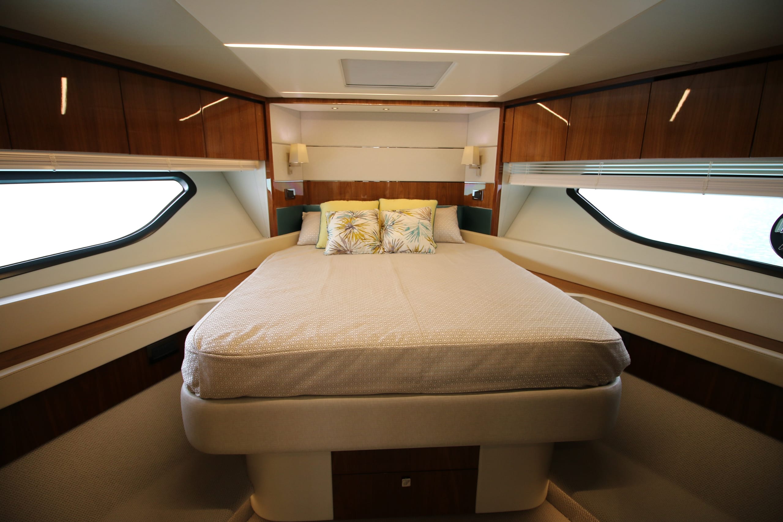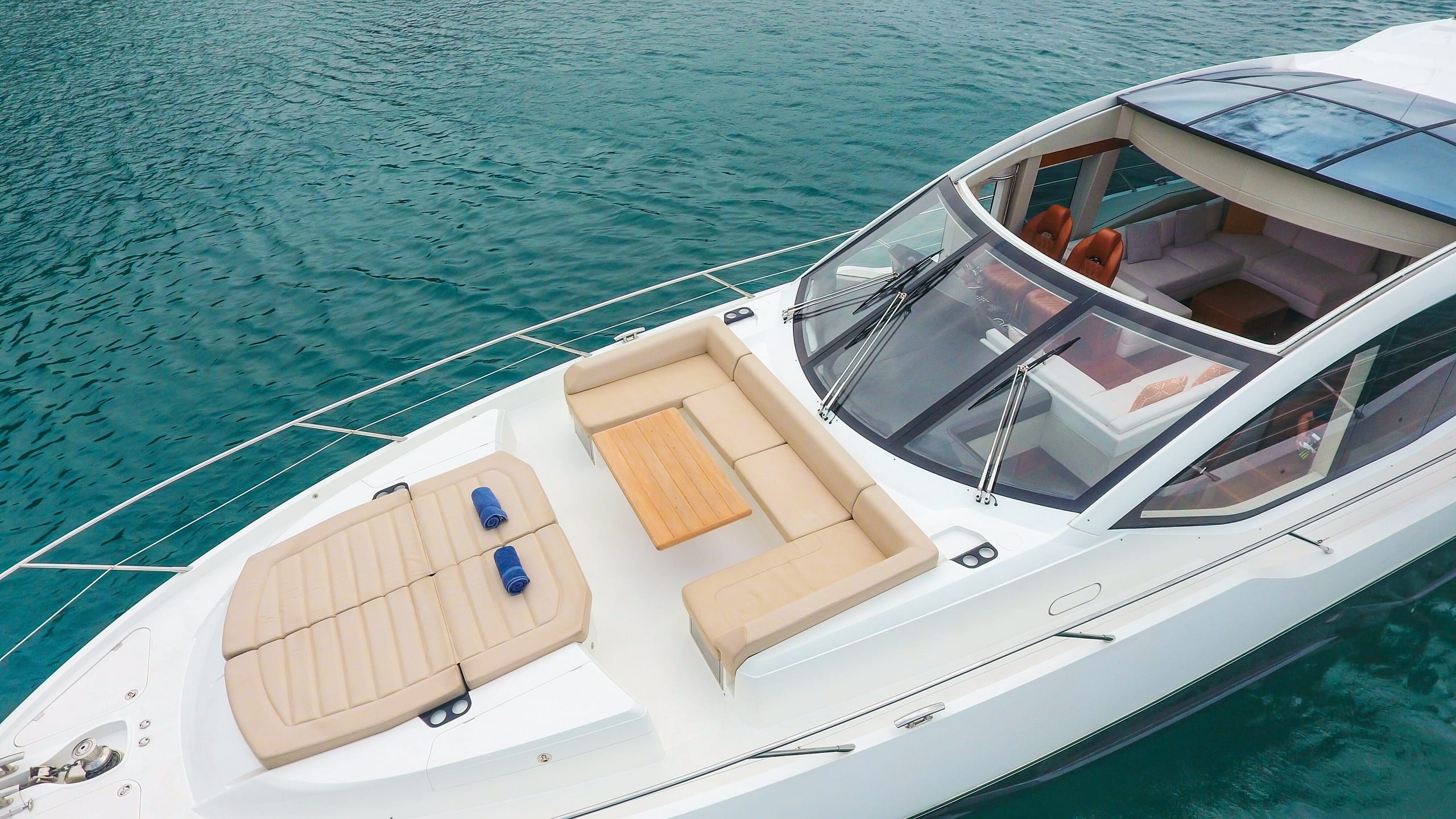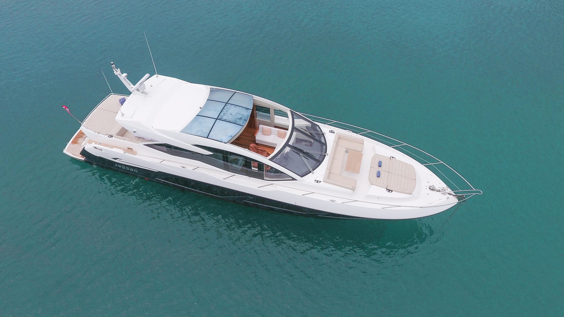 A symbol of timeless sophistication in her size range, she accommodates 6 guests in 3 staterooms, including a spacious Master suite and stylish VIP. Highly optioned, her outdoor areas include sun pads forward and aft and a shaded dining area aft. An opening rooftop means life on board can be optimized for any conditions.
