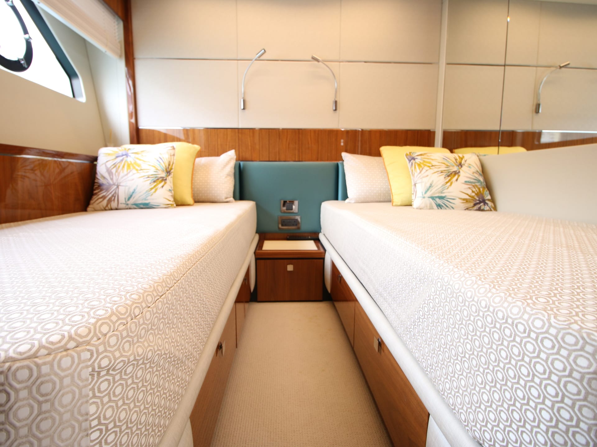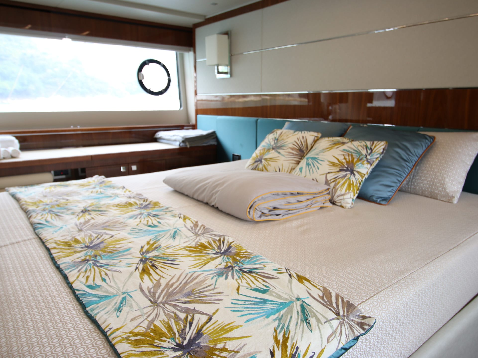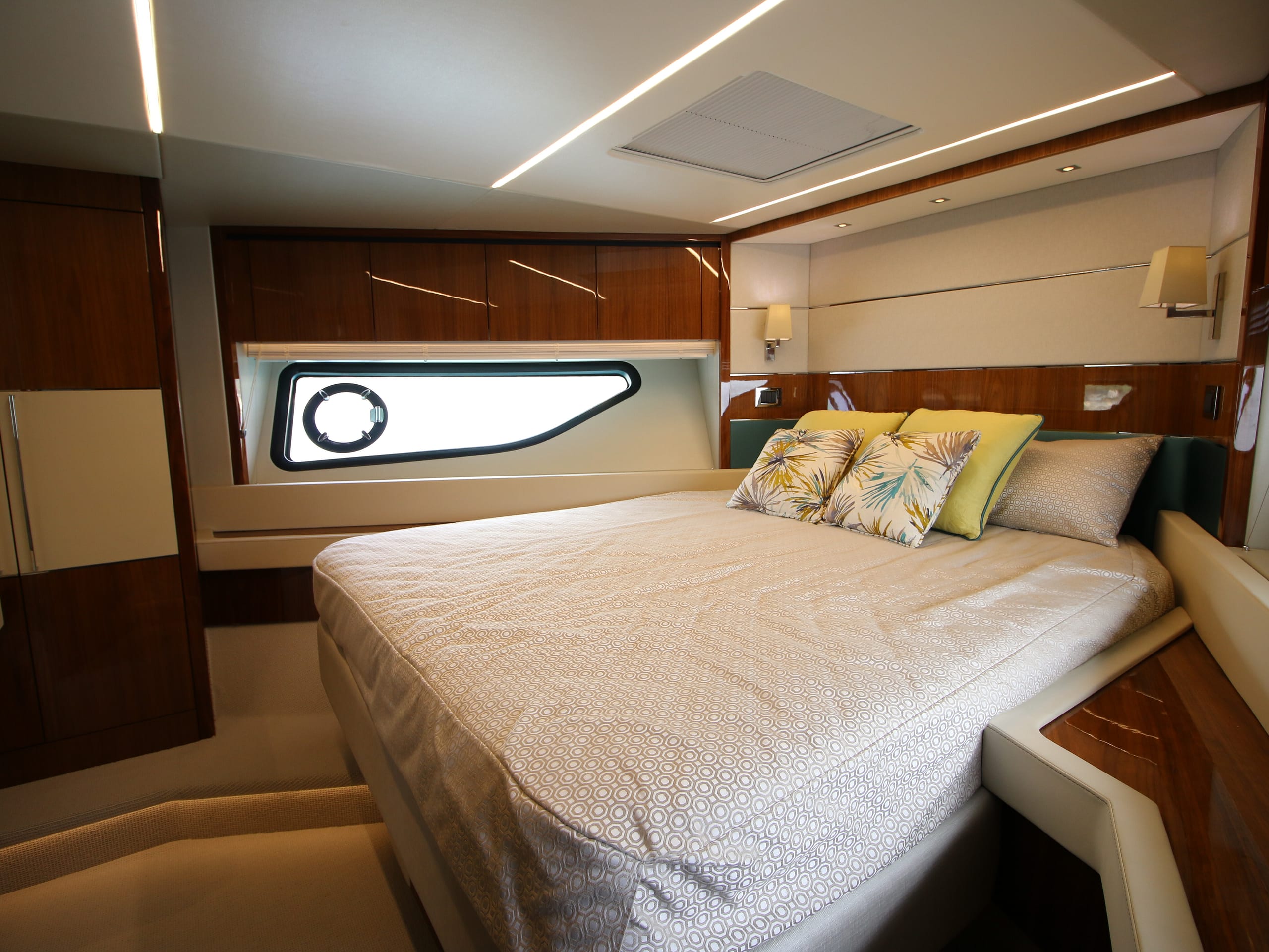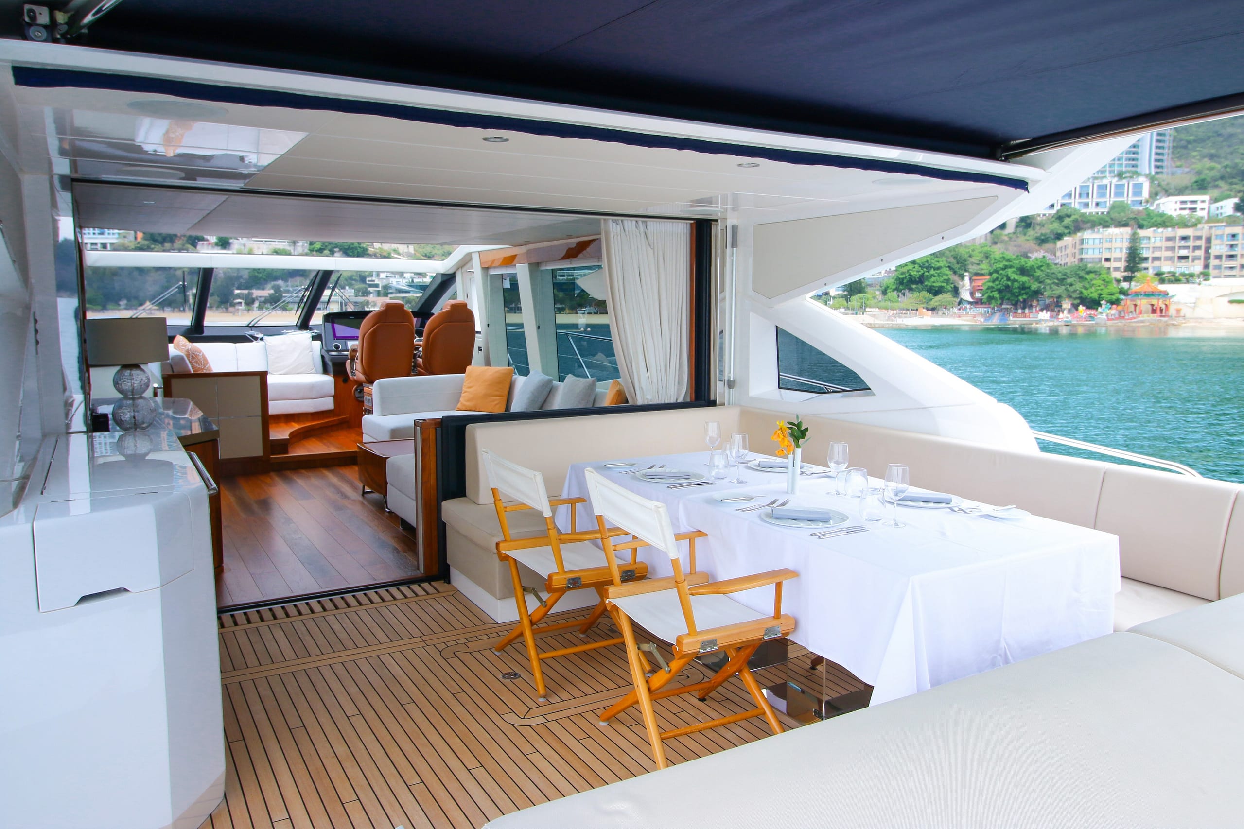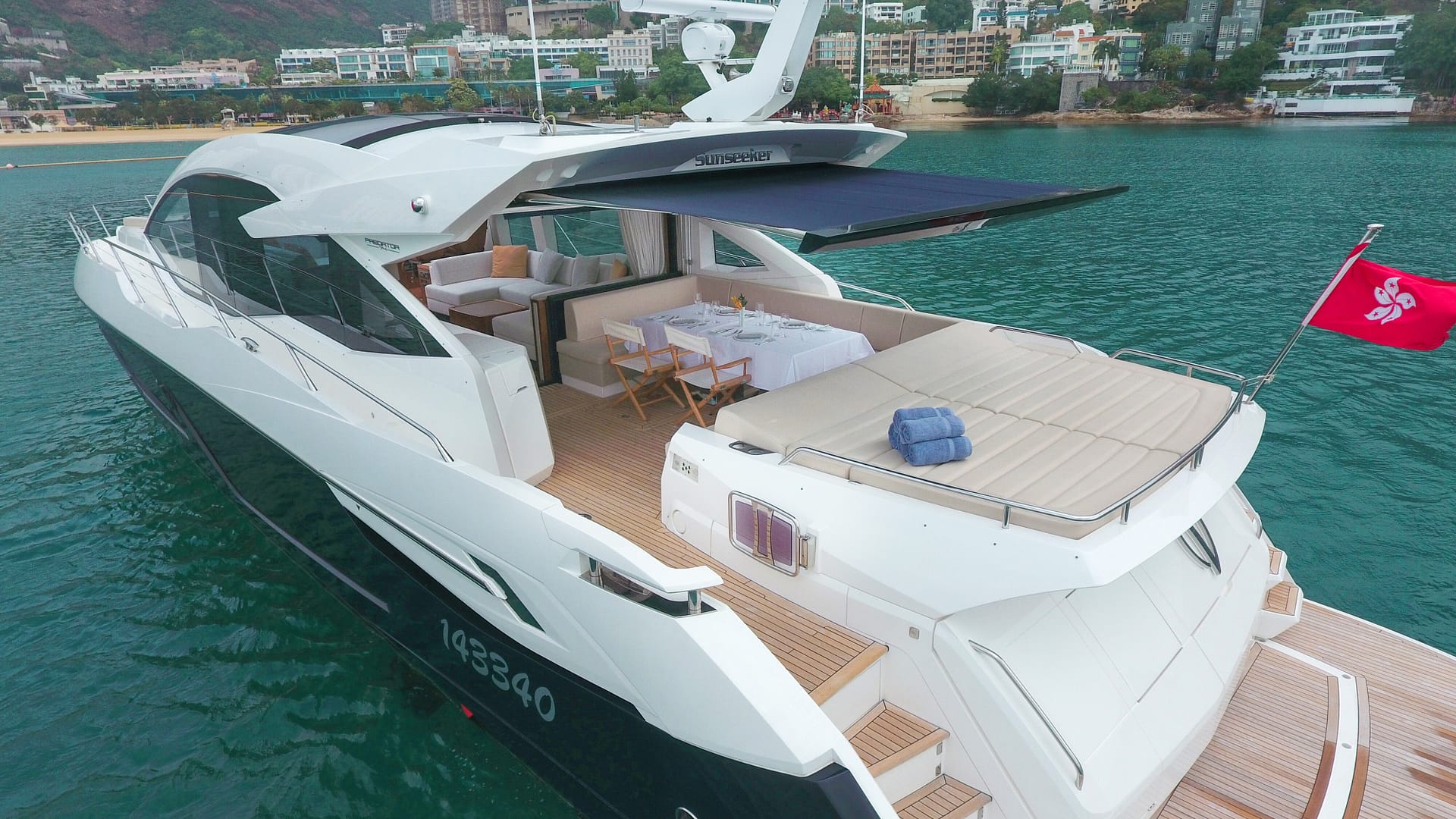 A symbol of timeless sophistication in her size range, she accommodates 6 guests in 3 staterooms, including a spacious Master suite and stylish VIP. Highly optioned, her outdoor areas include sun pads forward and aft and a shaded dining area aft. An opening rooftop means life on board can be optimized for any conditions.