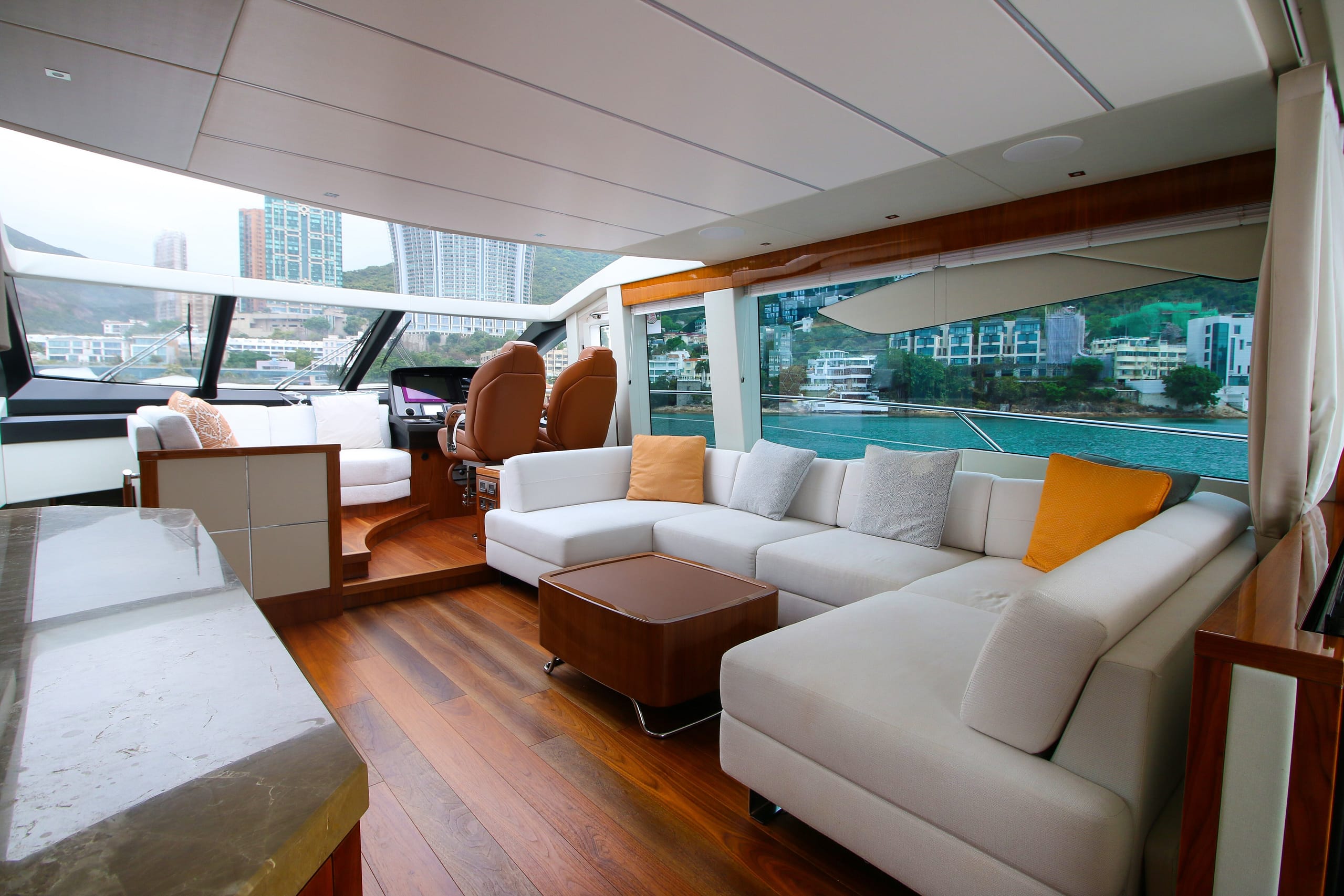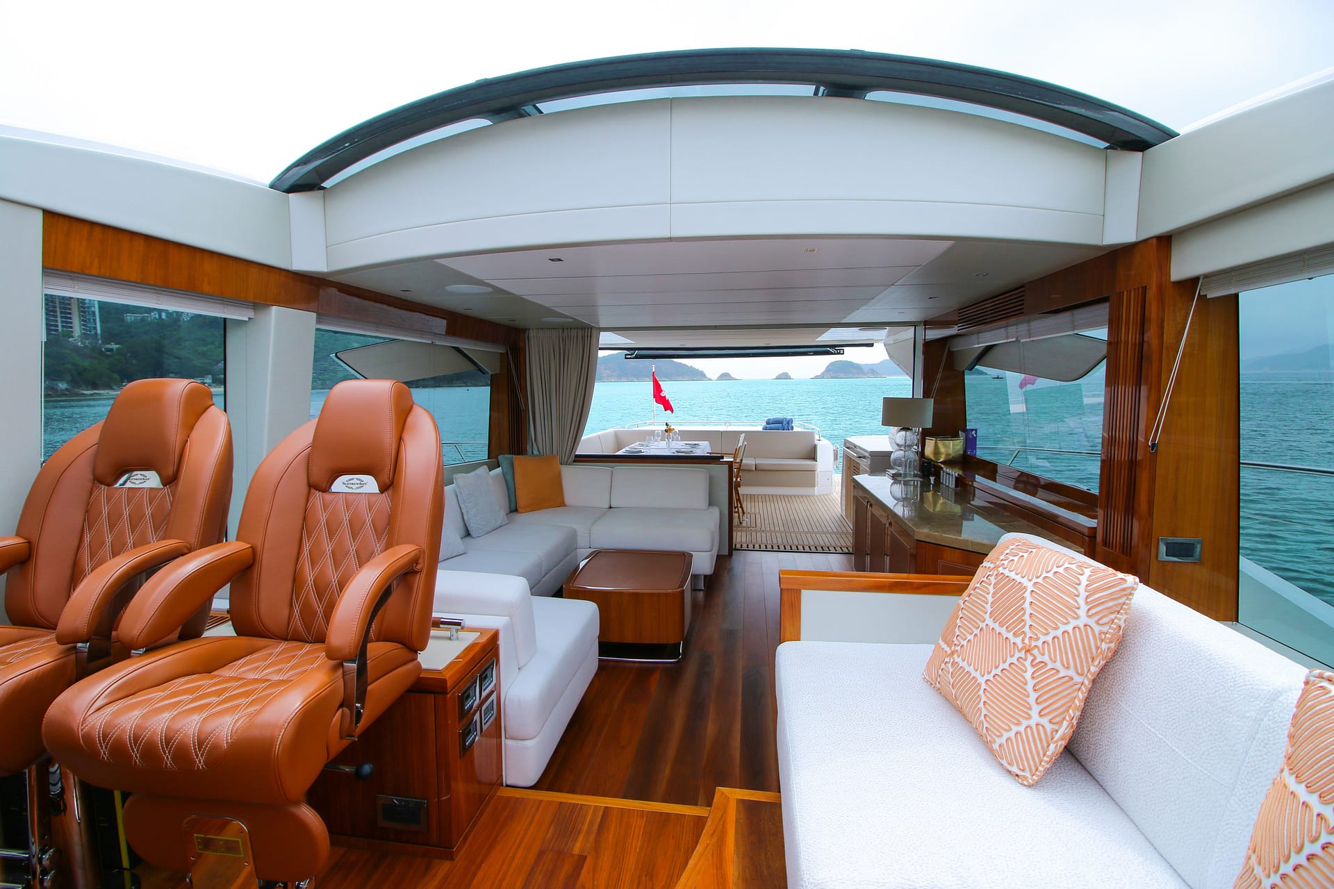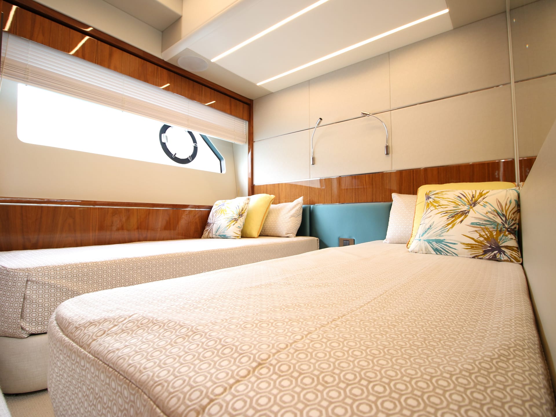 Performance meets luxury on board V, from the Sunseeker Predator series. Launched in 2019, V features sleek lines and reaches top speeds of 35 knots – cruising at 28 knots for fast-paced adventures on the water.