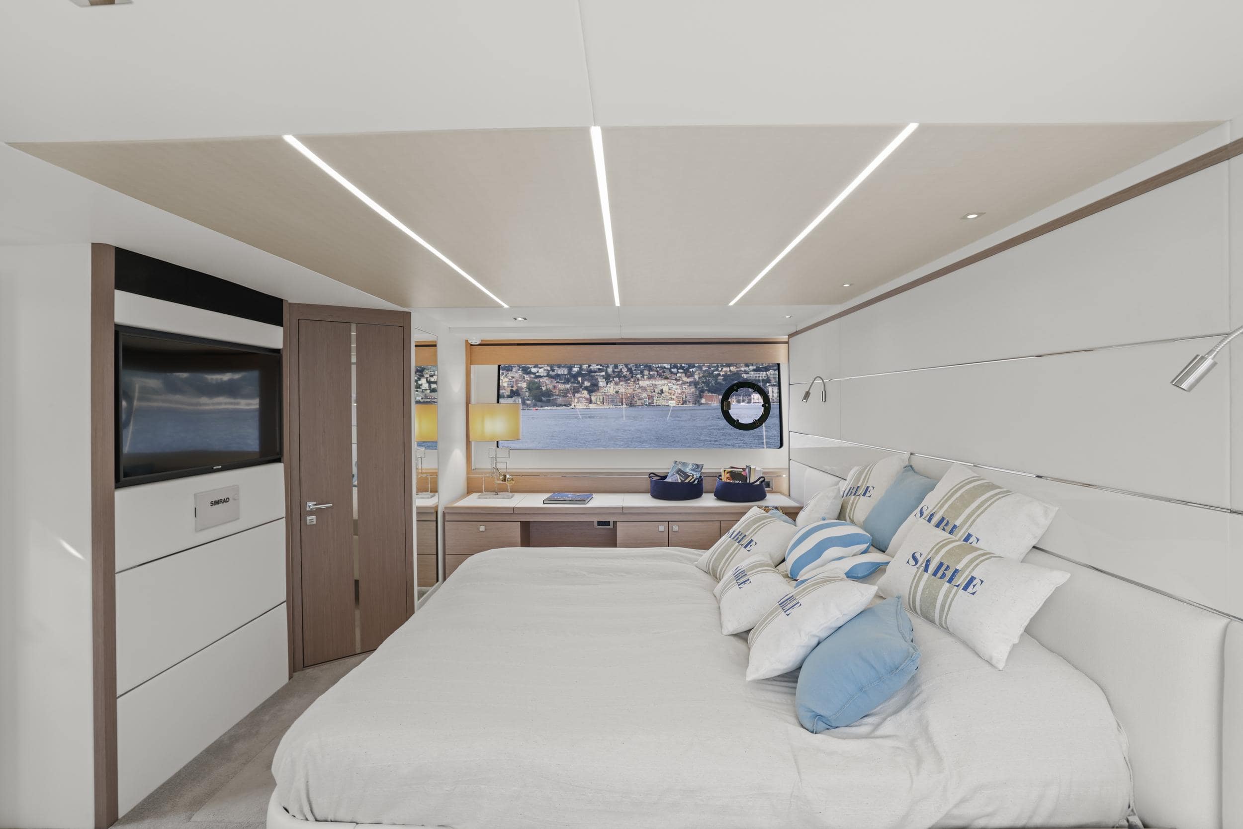 Accommodating up to eight guests in total comfort, she is equipped with stabilizers both at anchor and underway, a joystick for effortless maneuvering, and a water maker for extended cruising.