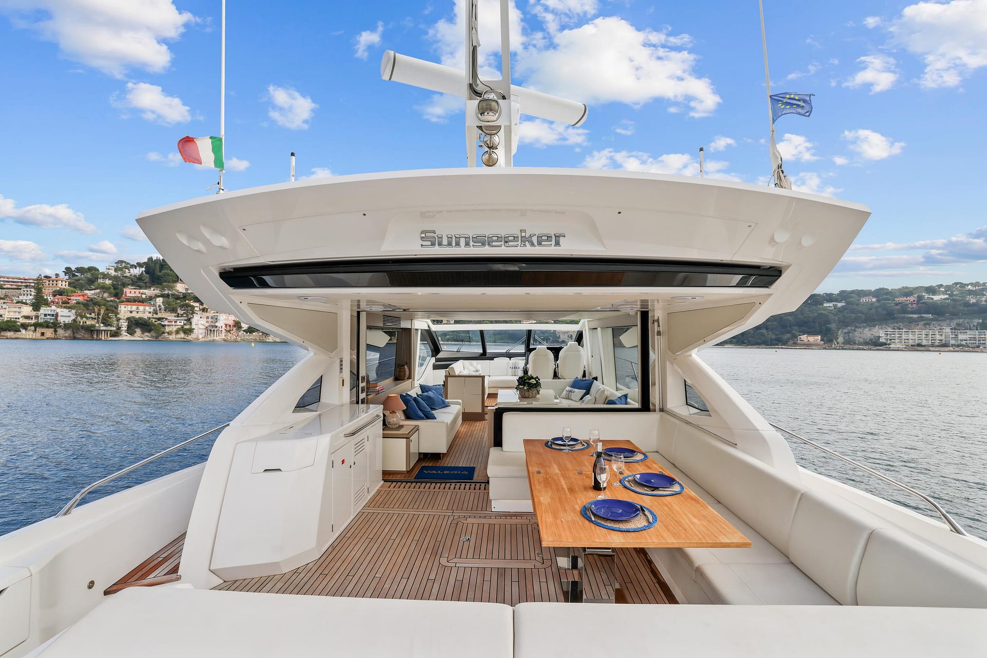 VALERIA is a prime example of the sought-after Sunseeker Predator 74, combining performance, comfort and contemporary design. Equipped with the largest engines available for this model, she reaches an exhilarating top speed of 38 knots and cruises effortlessly at 28 knots.