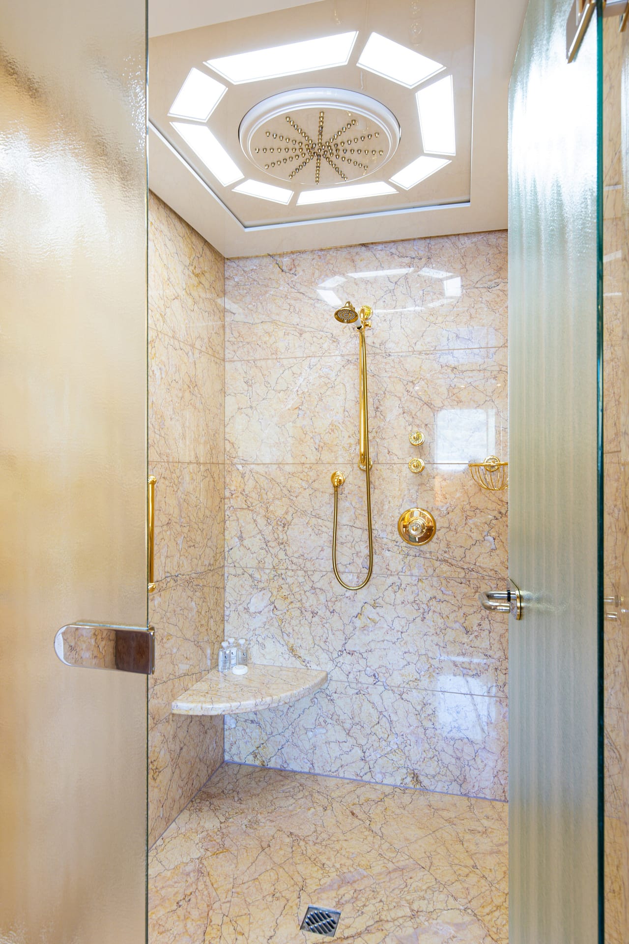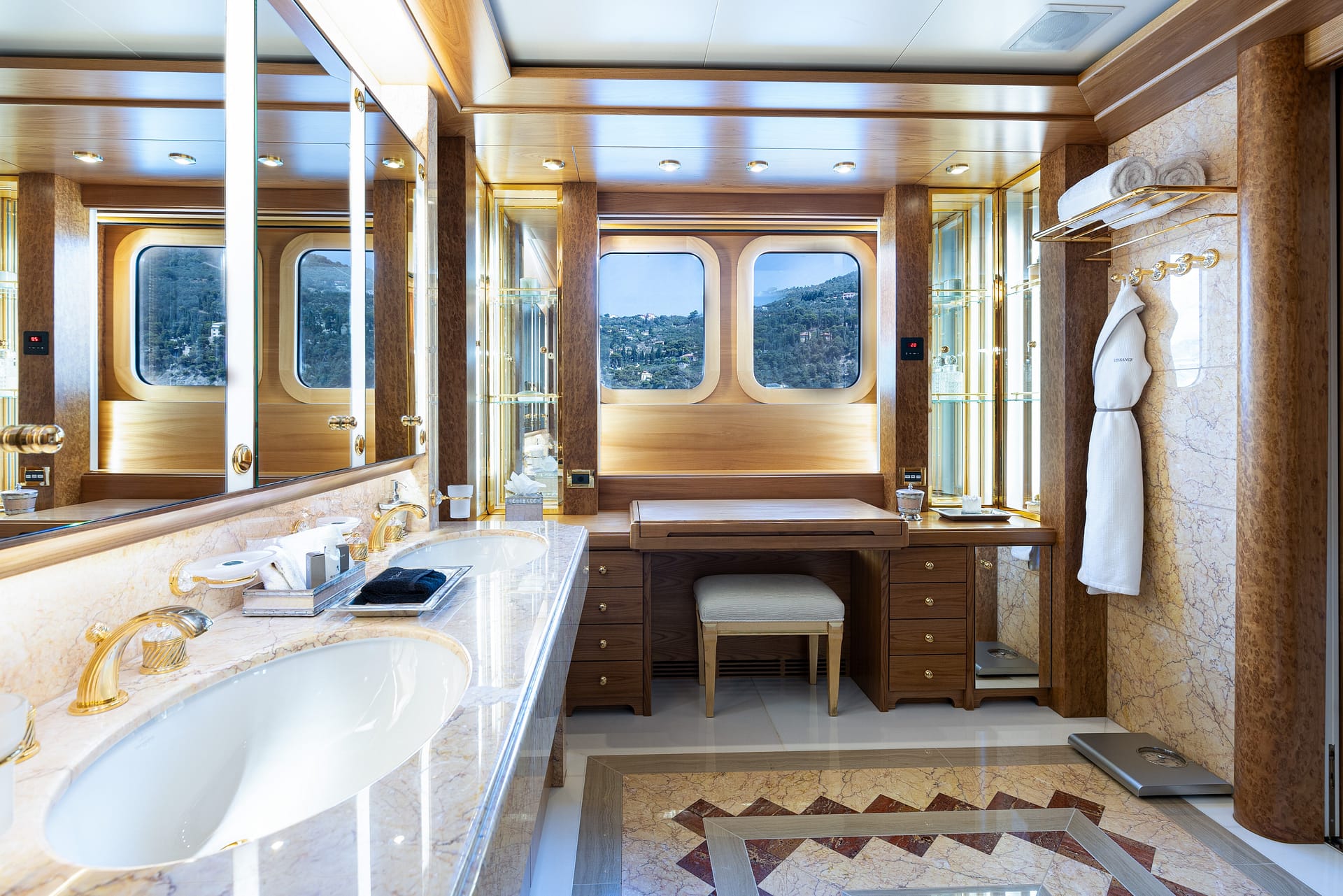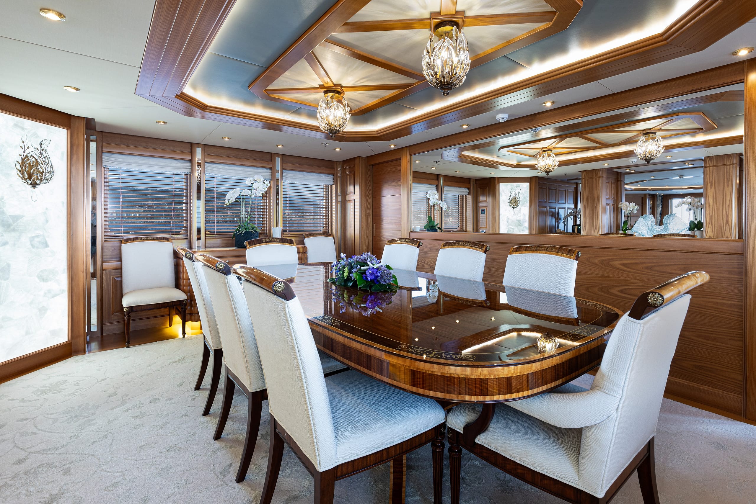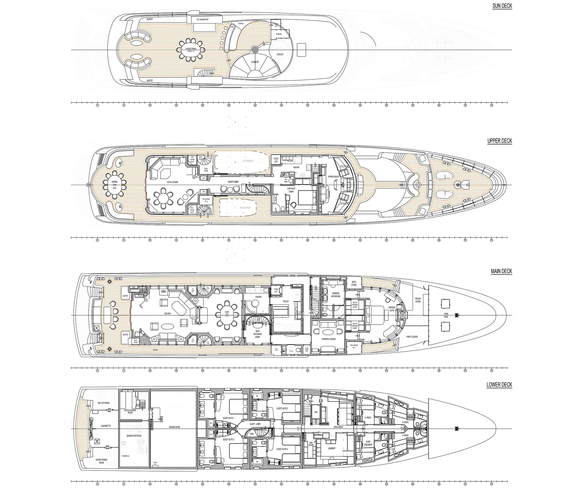 The spacious master cabin has its own private interior lounge and exterior seating via a private entrance. Tenders are stowed on the bridge deck mid-ship out of the way from guest spaces. With a full displacement hull and a large gross tonnage of 659 tonnes, she is extremely comfortable and quite underway.