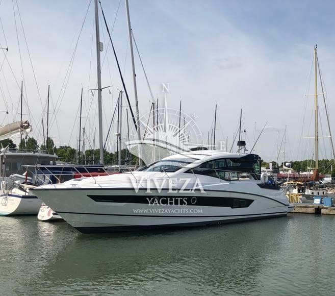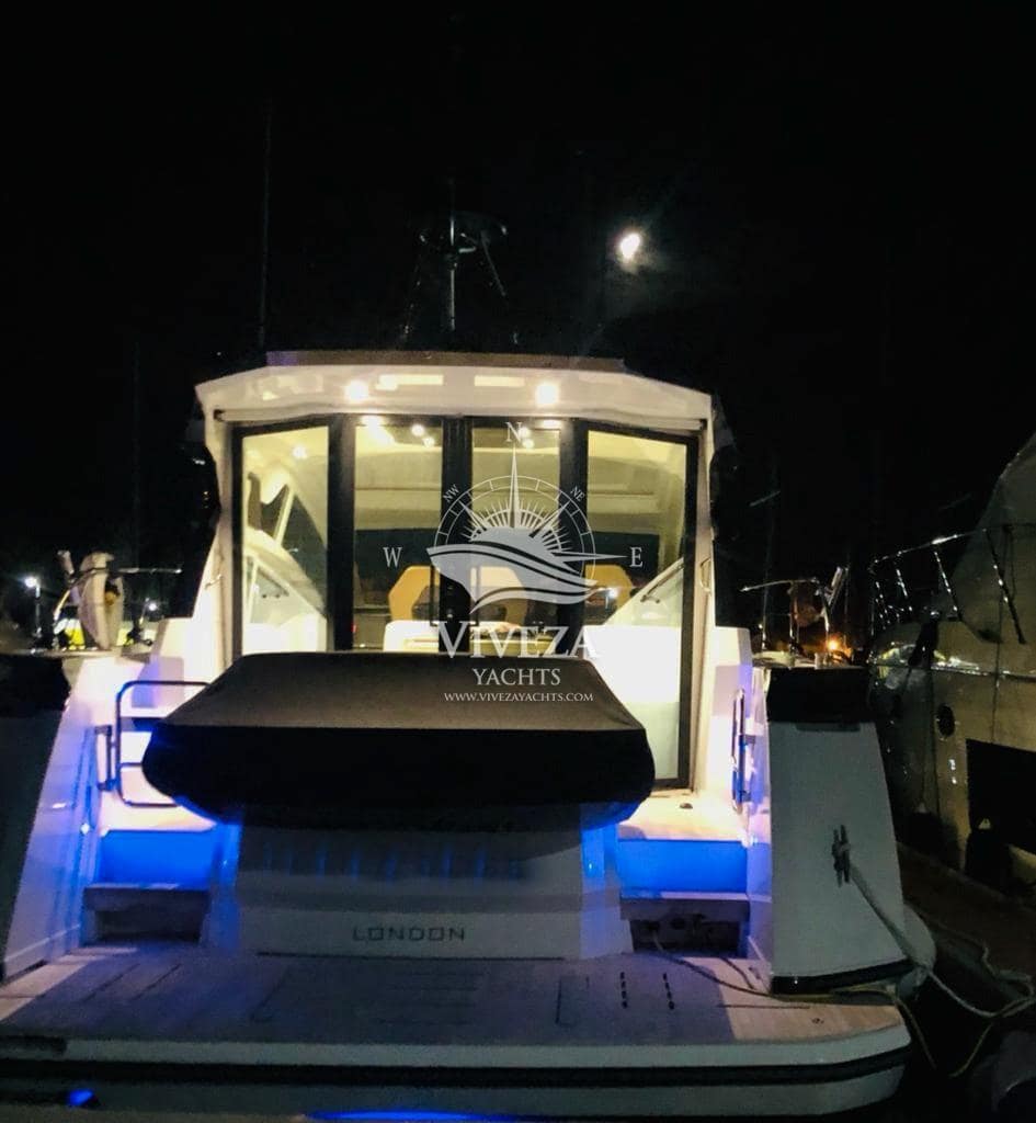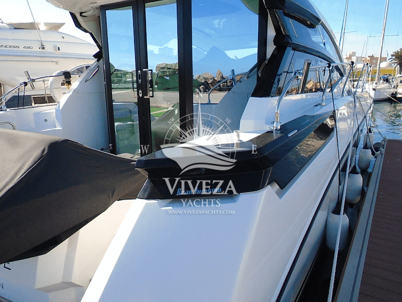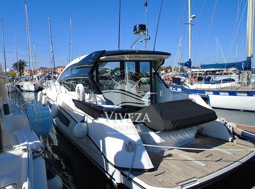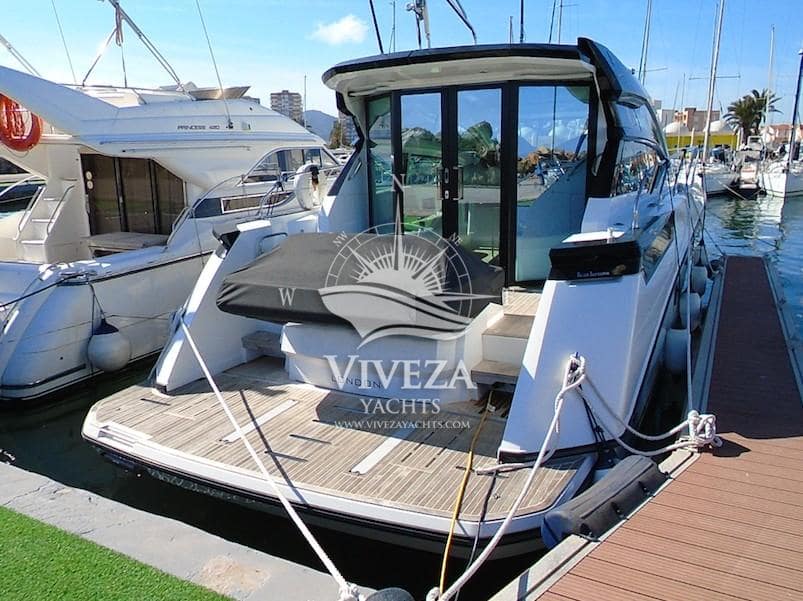 Gran Turismo 46 en muy buenas condiciones. Cuenta con dos motores Volvo de 370 CV cada uno. Techo rigido de apertura total. Acristalamiento lateral de accionamiento electrico y una amplia puerta de cristal que protege la banera.