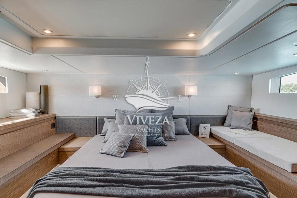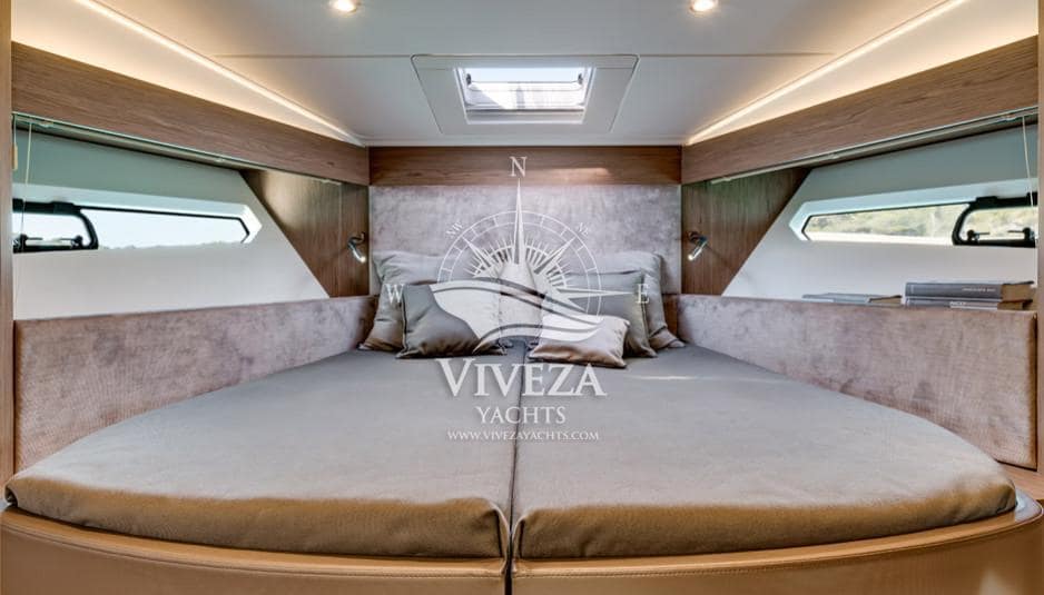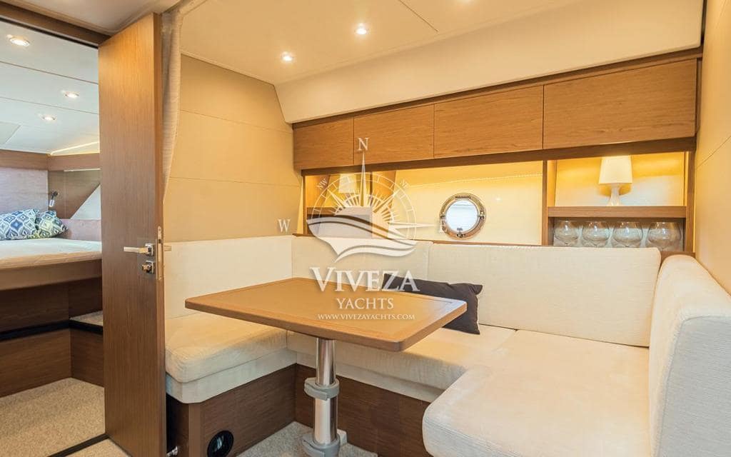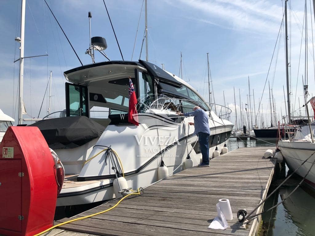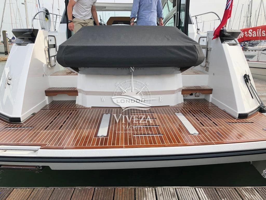 Gran Turismo 46 en muy buenas condiciones. Cuenta con dos motores Volvo de 370 CV cada uno. Techo rigido de apertura total. Acristalamiento lateral de accionamiento electrico y una amplia puerta de cristal que protege la banera.