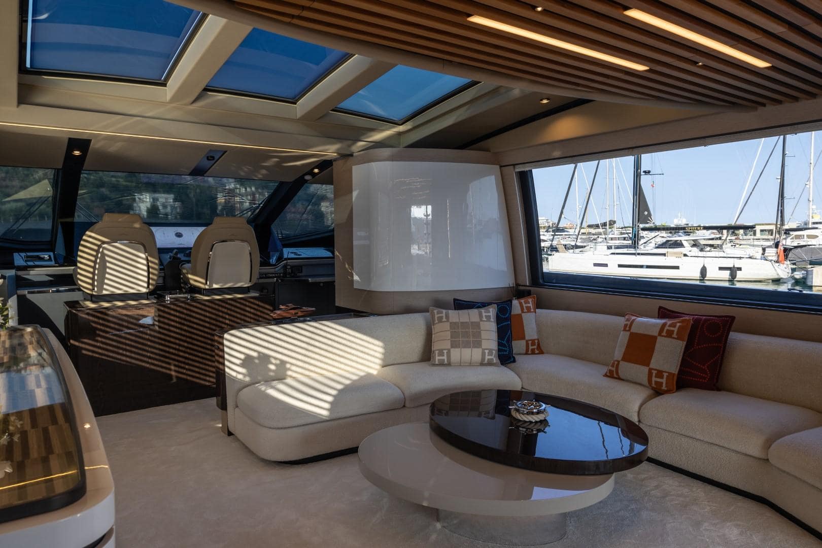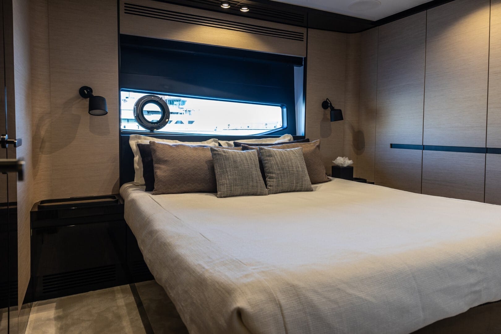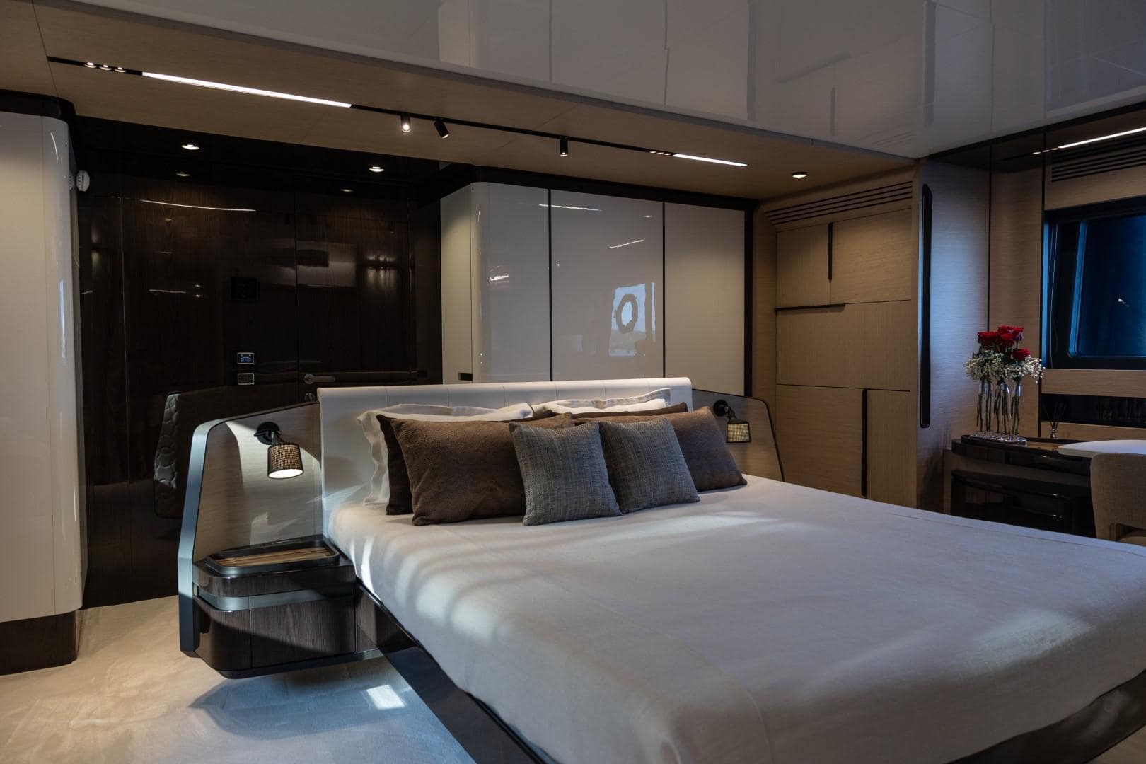 YB’s interior, designed by Francesco Guida, is a blend of comfort and refinement, with a spacious salon, floor-to-ceiling windows that flood the spaces with natural light, and a galley equipped with top-of-the-line appliances. She accommodates up to 8 guests across 4 staterooms, including a Master Suite, two double staterooms and one twin stateroom. She also offers accommodations for a dedicated crew of 4.