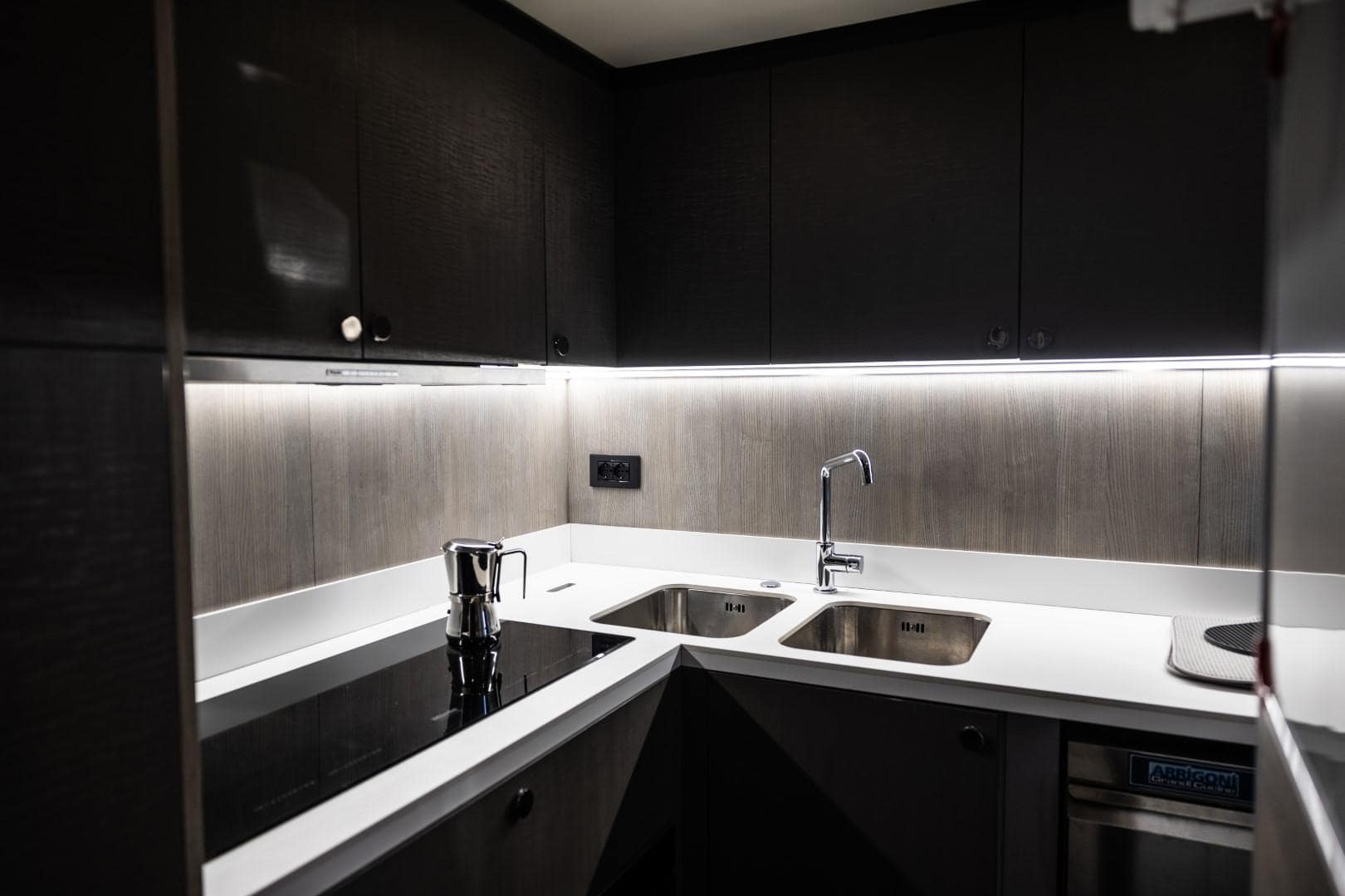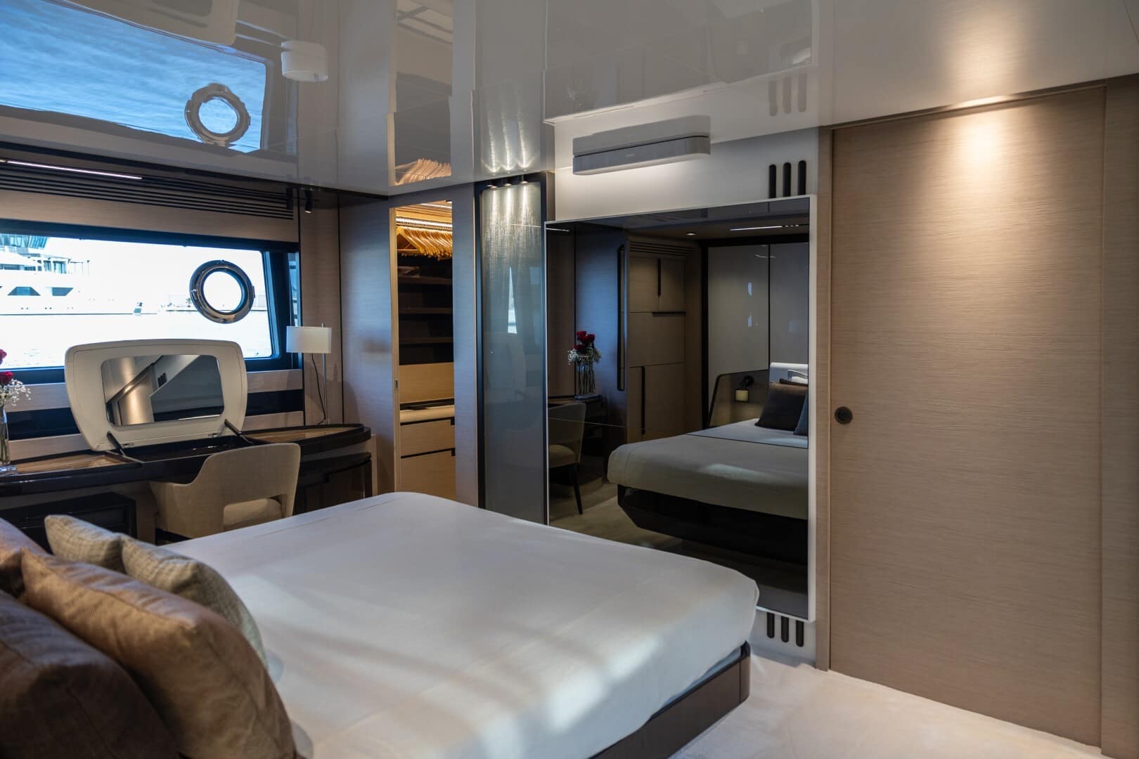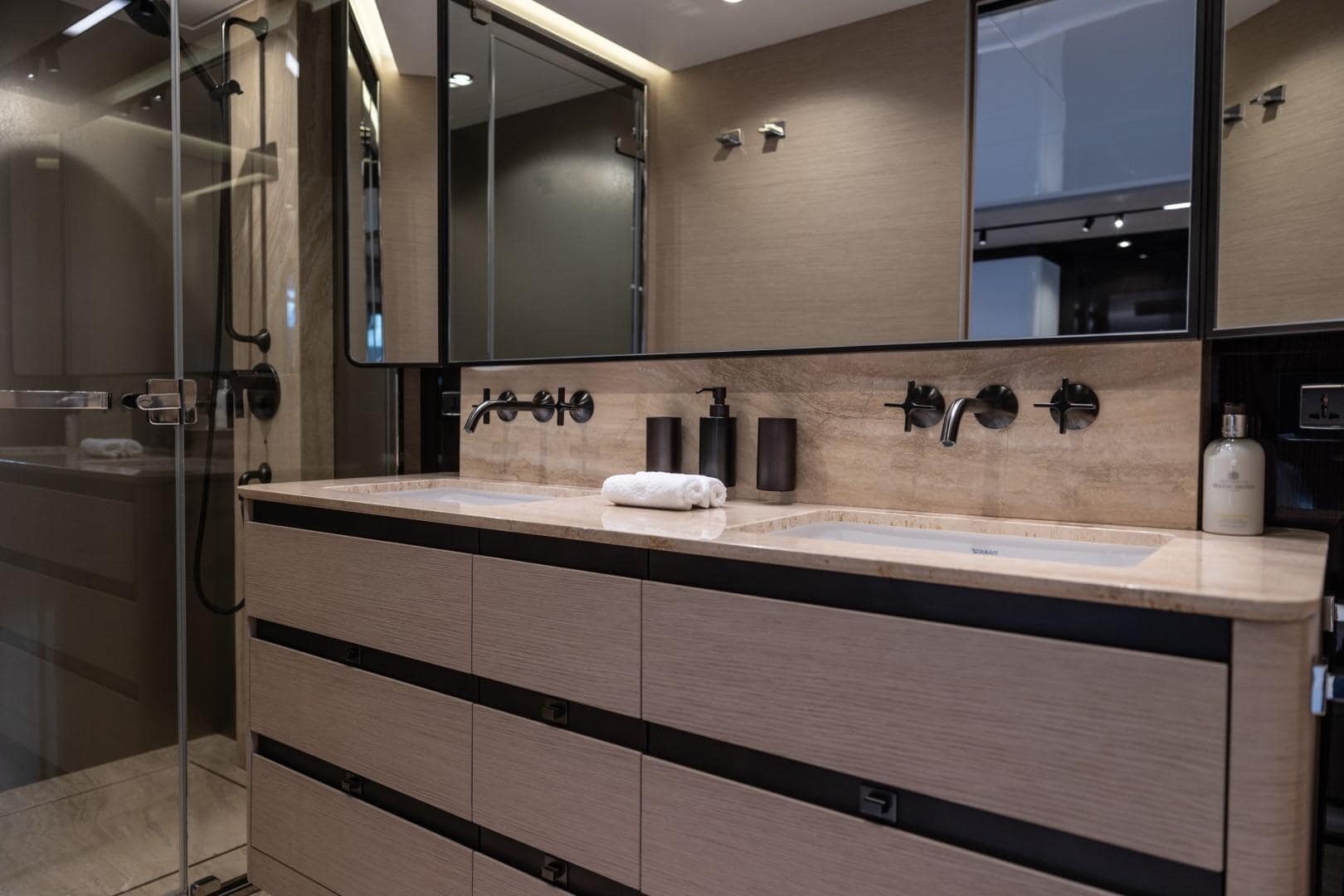 YB’s interior, designed by Francesco Guida, is a blend of comfort and refinement, with a spacious salon, floor-to-ceiling windows that flood the spaces with natural light, and a galley equipped with top-of-the-line appliances. She accommodates up to 8 guests across 4 staterooms, including a Master Suite, two double staterooms and one twin stateroom. She also offers accommodations for a dedicated crew of 4.