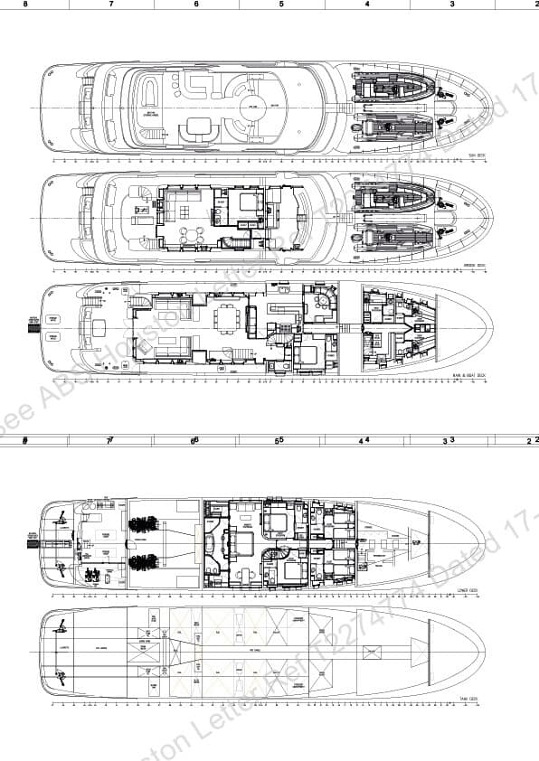 Powered by two Caterpillar C32 engines, ZeXPLORER cruises at 11.5 knots and can reach a top speed of 13.5 knots. Her robust construction includes an ice-strengthened steel hull and Quantum zero speed stabilizers for smooth sailing in all conditions. A standout feature is her expansive tender deck, which can accommodate two 8M/26′ tenders and other personal watercraft.