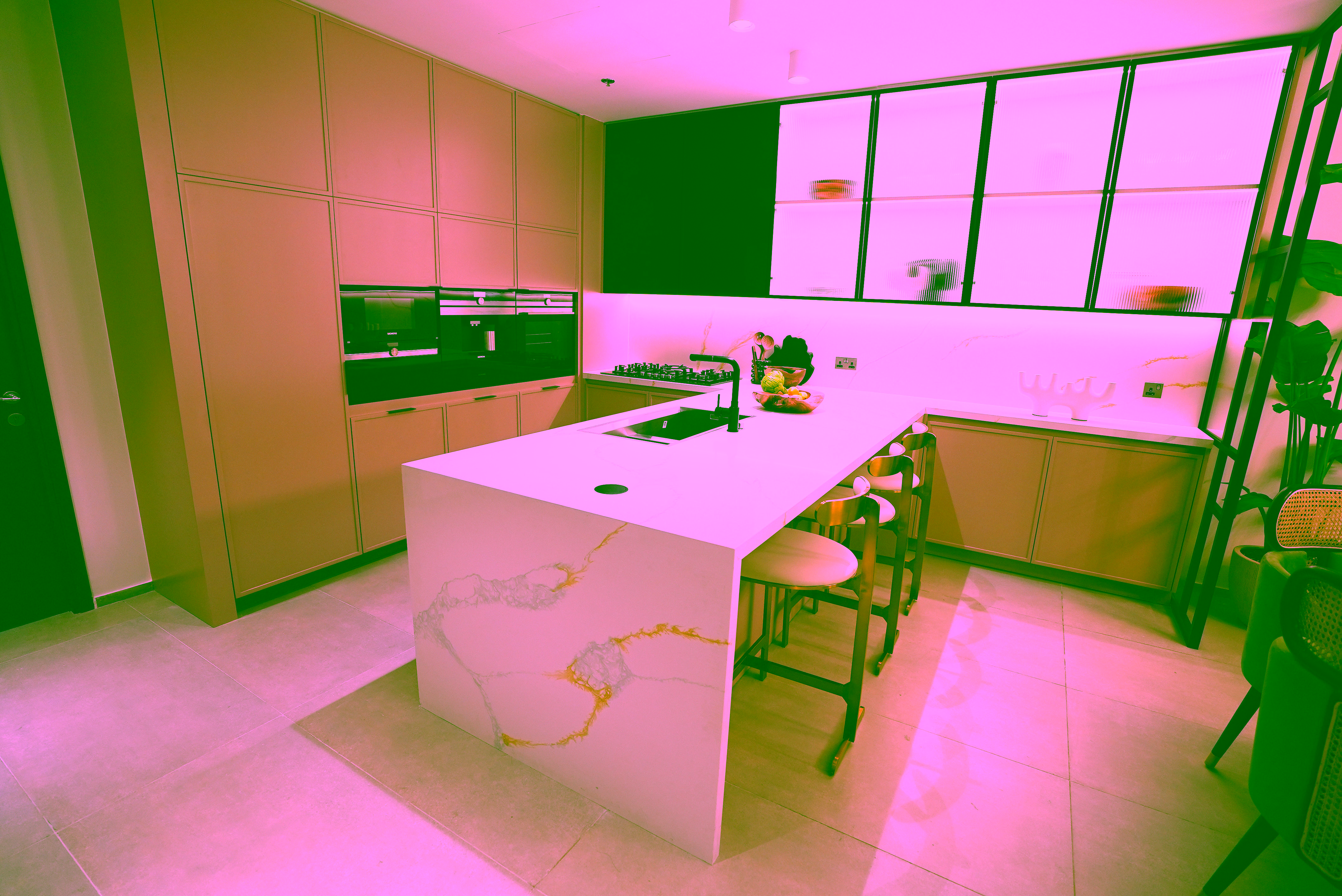 Living spaces are bright, inviting, and intuitively laid out to encourage relaxation and ease. Kitchens feature fully integrated branded appliances, sleek countertops, and a contemporary breakfast bar that doubles as a workspace. Bedrooms offer a calm retreat with high ceilings, expansive sunlight windows, built-in wardrobes, and ample storage. Bathrooms are equally luxurious, with spa-like finishes, mirrored cabinets, and plush porcelain flooring that complement the white tile feature walls.