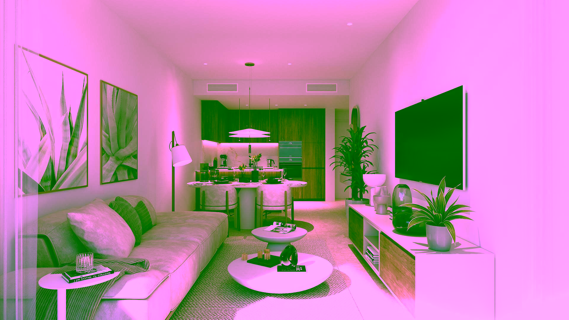 2-bedroom homes with 1 bathroom, dressing room, living-dining room with integrated kitchen and large terraces with sea views. One parking space and 1 storage room are included per home. The properties are delivered furnished, with appliances and fully installed ducted air conditioning.