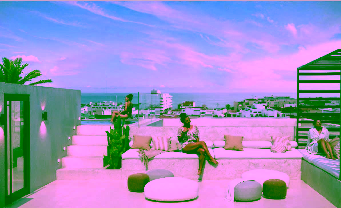 The residential complex is designed for comfort and social living. Residents can enjoy a spectacular rooftop communal area featuring a swimming pool, sunbathing spaces with loungers, and landscaped zones — a peaceful retreat for summer relaxation.