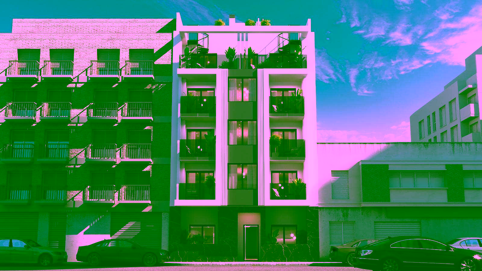 This exceptional new development is located in the very centre of Torrevieja, just 150 m from the natural swimming pools and seafront promenade, and only 500 m from Playa del Cura. Surrounded by an extensive range of services including shops, supermarkets, parks, cafés and restaurants, the area offers everything you need within a short walk. Its combination of urban convenience and coastal tranquillity makes it one of the most attractive residential areas in the city.
