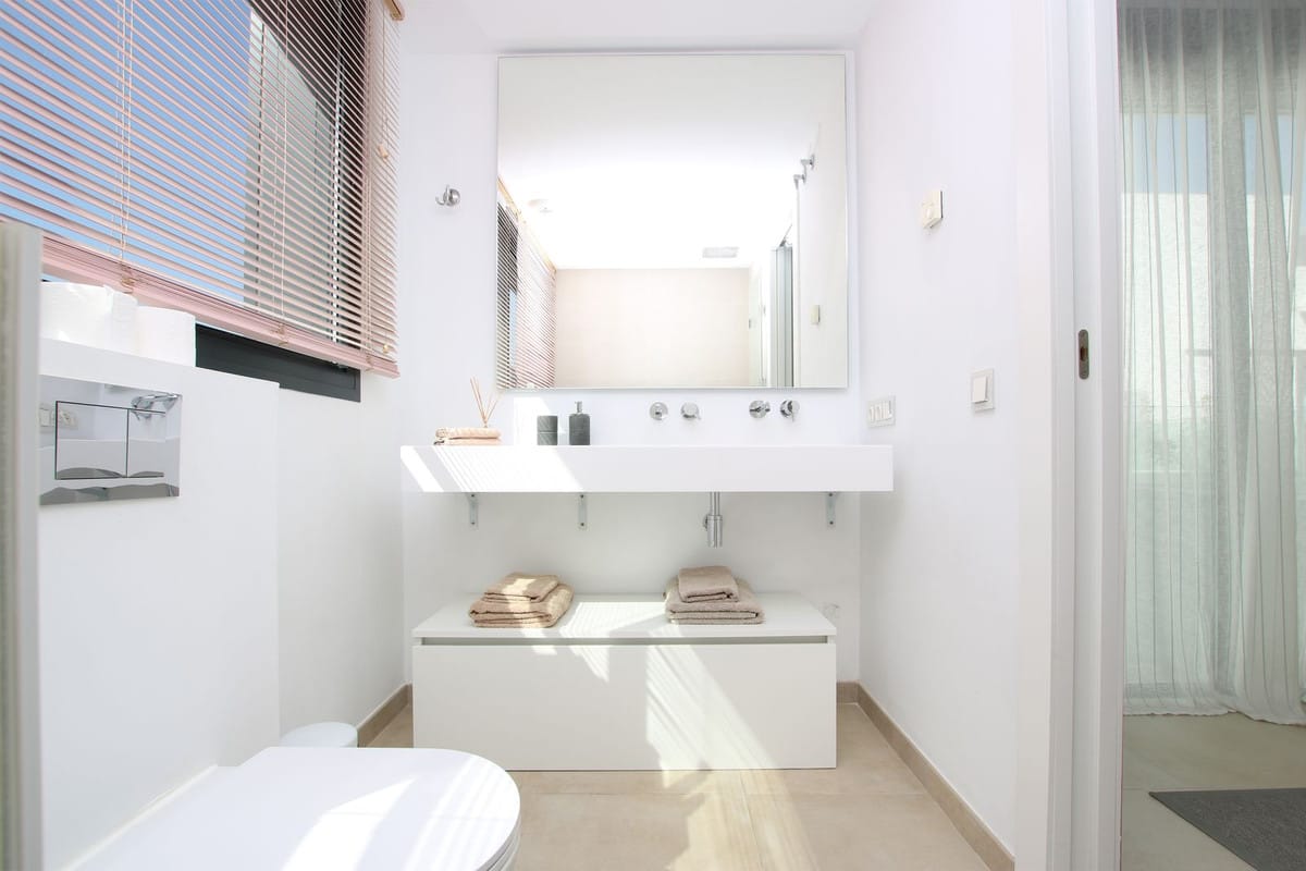 The residence features two spacious bedrooms, each a serene retreat with ample natural light and built-in storage. the bedrooms are complete with high-end fixtures and a spa-like atmosphere. A second well-appointed bathroom serves guests and the second bedroom with equal sophistication.