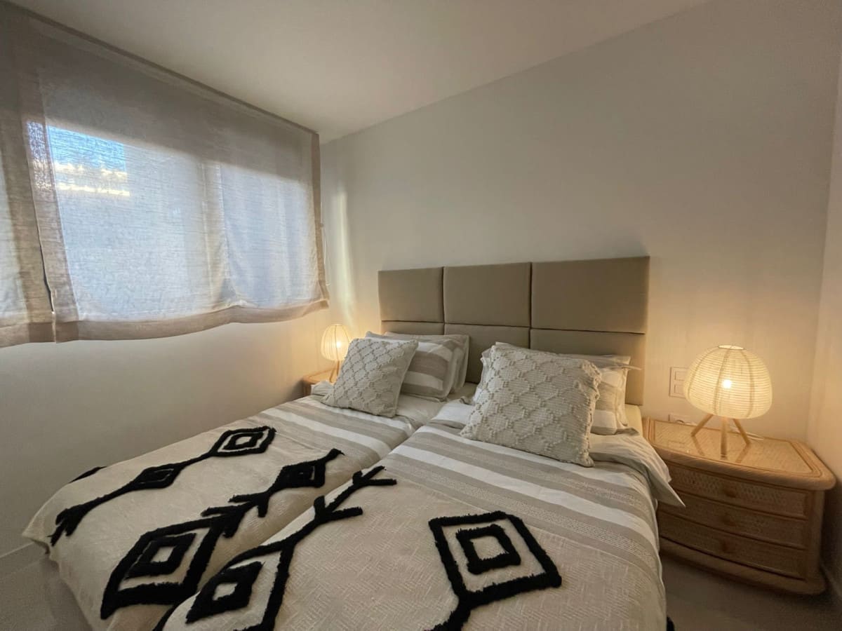 The apartment includes a fully fitted kitchen, ensuite bathroom, fitted wardrobes, and a covered terrace—ideal for enjoying the Mediterranean climate. Furniture is optional, allowing you to tailor the space to your taste.