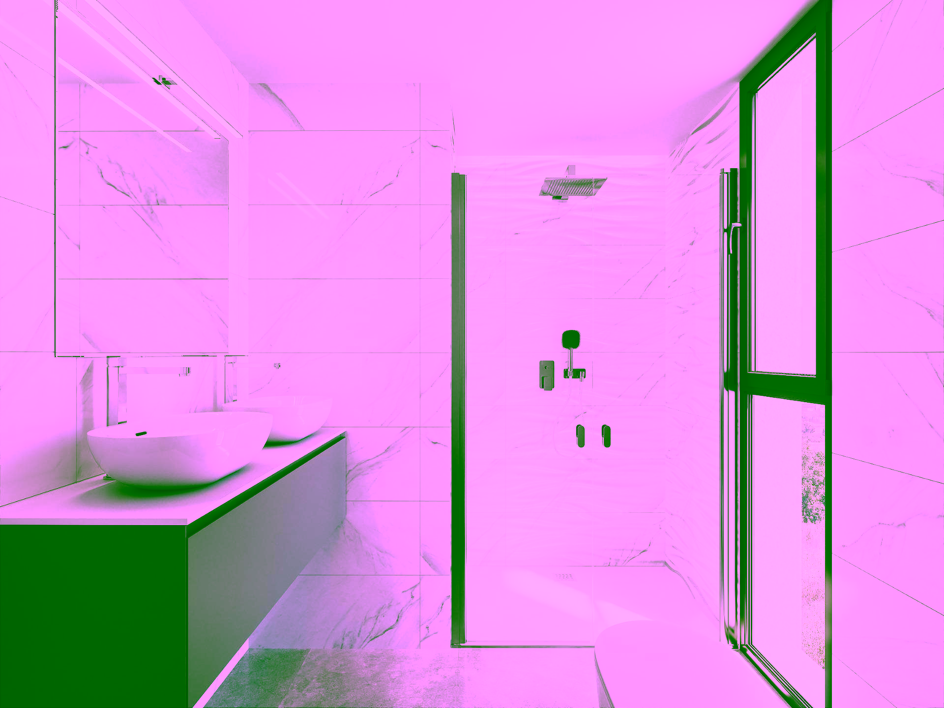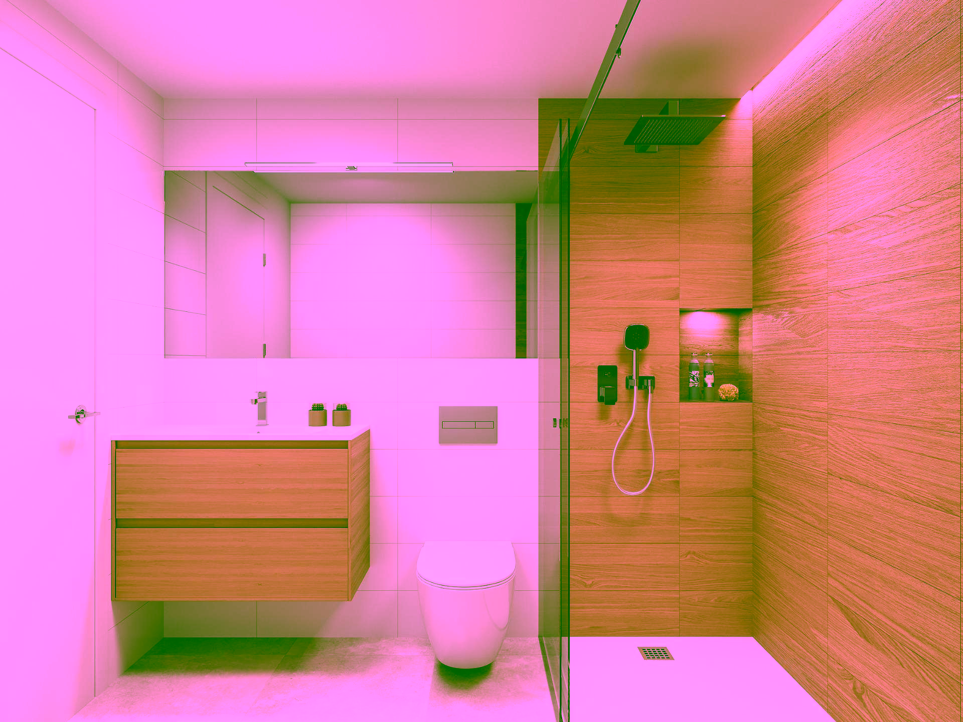 Bathrooms with wall-mounted washbasins, mirror, wall-to-wall shower tray and glass screen