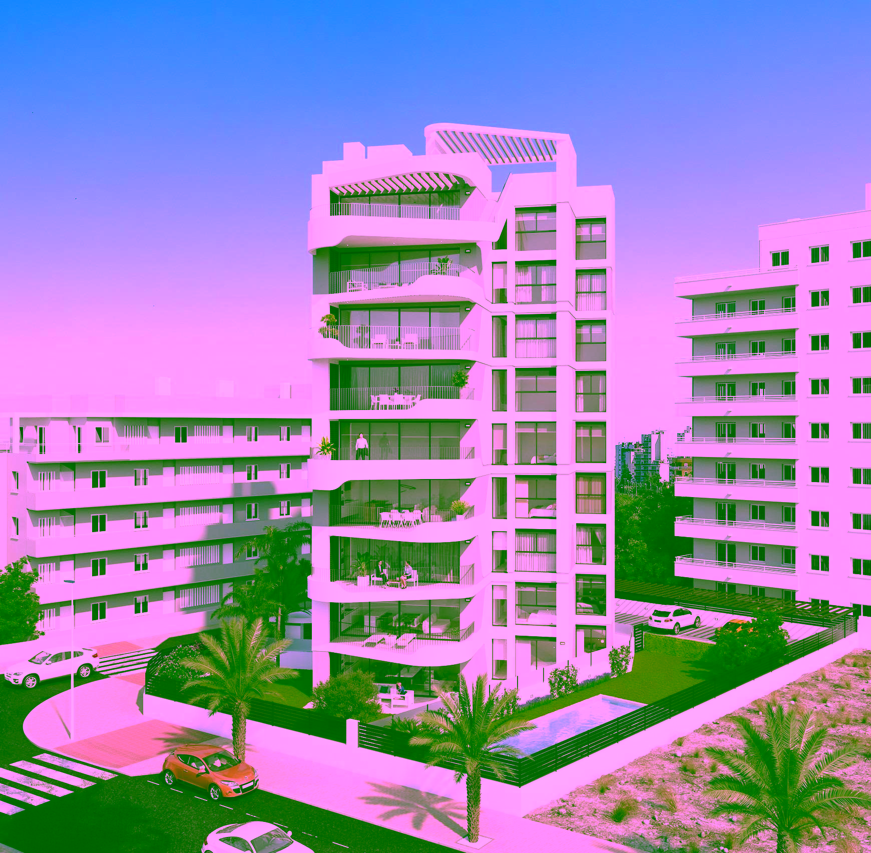 This new residential development in Guardamar del Segura, Alicante, offers a unique opportunity to live in a privileged location with unobstructed views of the Segura River and the Vega Baja. The building consists of only 9 exclusive homes, one per floor, ensuring privacy, tranquillity and comfort.