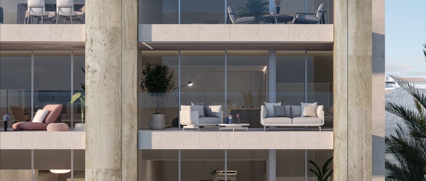 Apartments with 3 bedrooms and 2 bathrooms, open plan kitchen with the lounge area, fitted wardrobes and have direct views of the town square, the beach, and the sea.