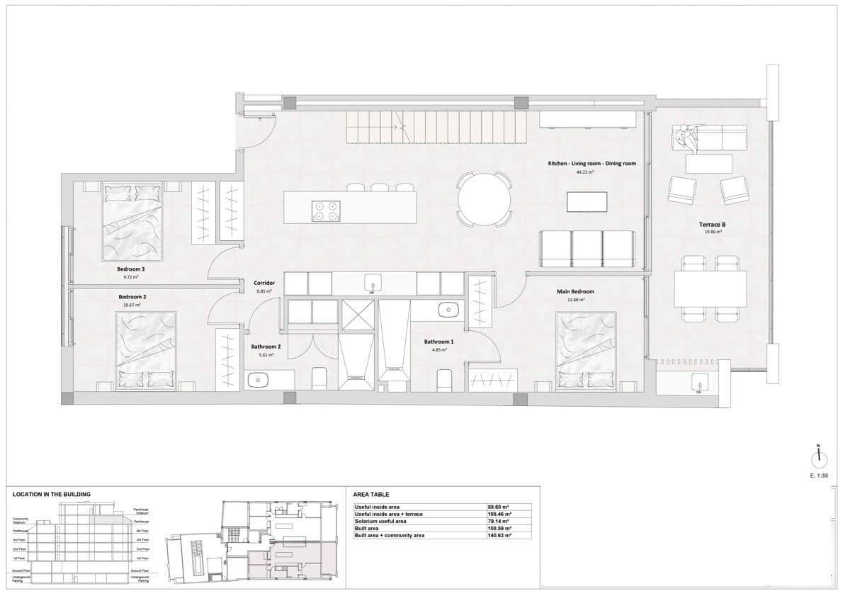 The penthouse apartments also have direct access to their own private roof terrace of 80 m2, with panoramic views.