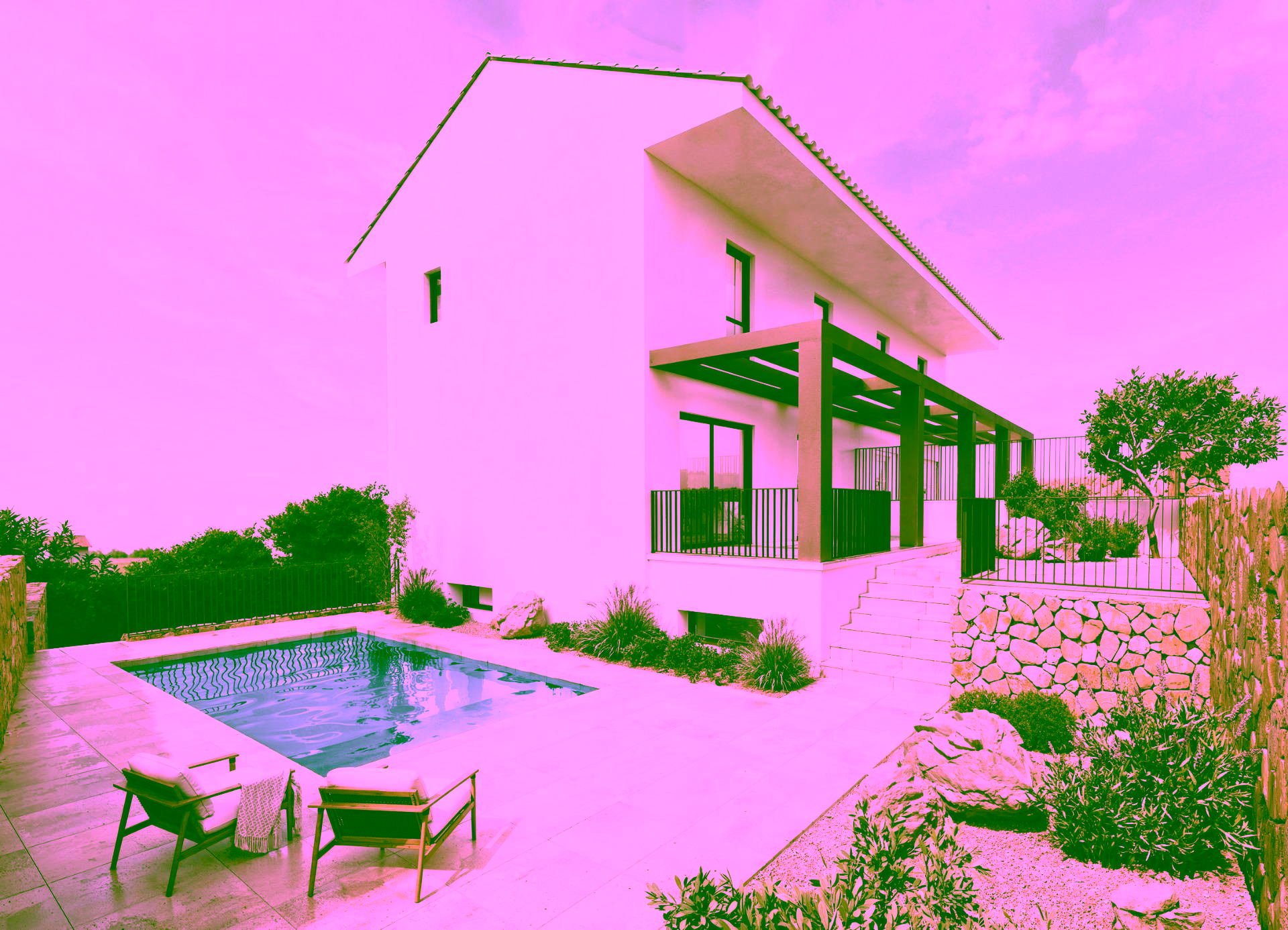 Each villa sits on a private plot and includes a basement with garage, laundry, and storage. The ground floor offers multiple terraces, a private pool, an open-plan living-dining room connected to the kitchen, and a guest toilet. On the first floor, you will find 3 bedrooms and 2 bathrooms, including a master suite with ensuite bathroom. The rooftop solarium offers panoramic open views.