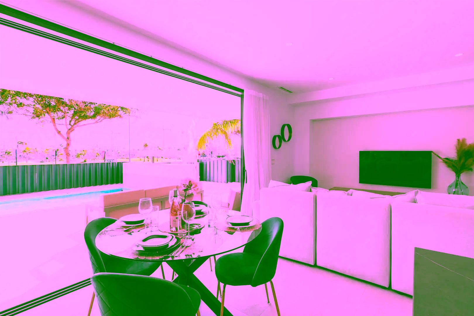 These exceptional villas offer nearly 250 m² of beautifully designed living space on plots of approximately 300 m². Spanning two floors, each villa features three spacious en-suite bedrooms, an additional guest toilet on the ground floor, and an expansive open-plan kitchen, living, and dining area that extends seamlessly onto the terrace through a stunning 4.5-metre sliding glass door that disappears into the wall.