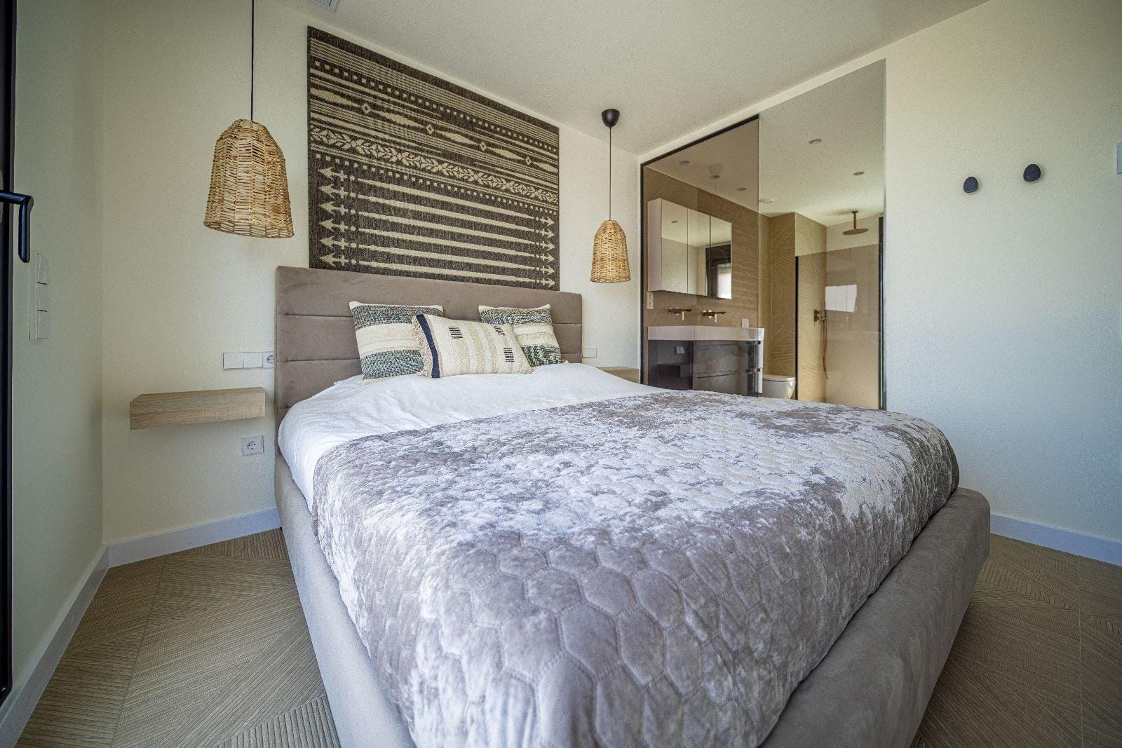 Modern townhouses with 3 bedrooms, 3 bathrooms, open plan kitchen, living room with direct access to the terrace with private pool, terraces, parking space.