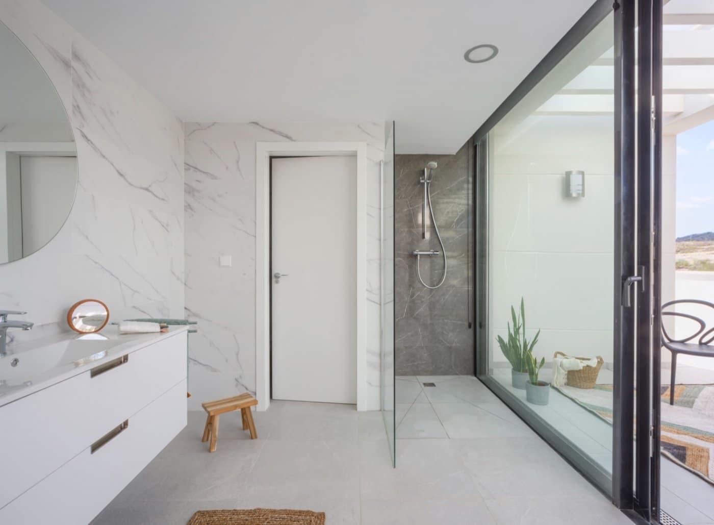 New Build luxury villa with open plan kitchen, 3 bedrooms, 3 bathrooms plus a toilet, private garden with pool, terace, solarium and basement.