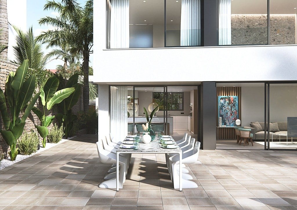 Gardens with water drainage system in the paving, fully finished and customisable including vegetation, irrigation and lighting. Terraces at various heights creating cosy atmospheres surrounded by vegetation and infinite sea views.