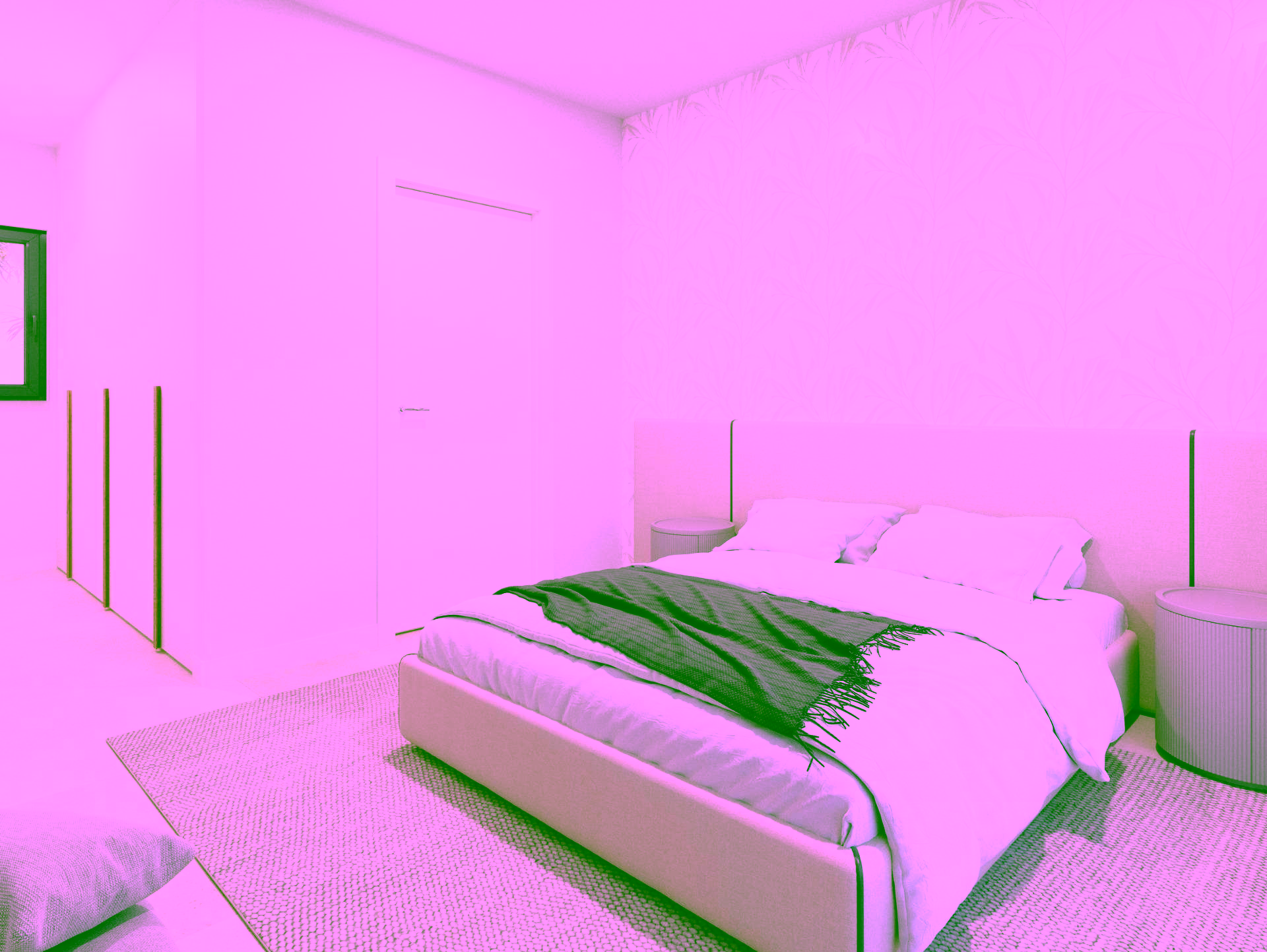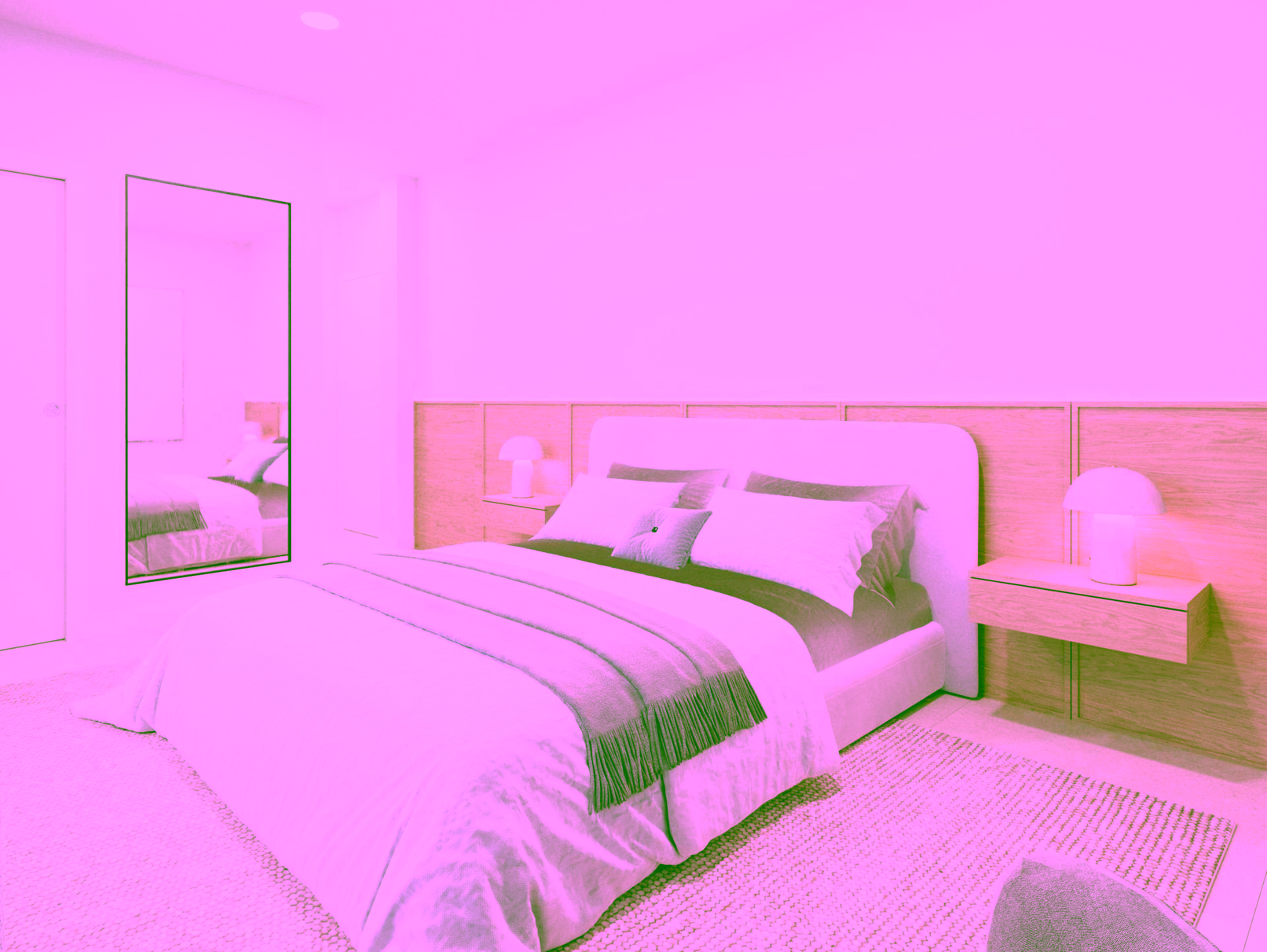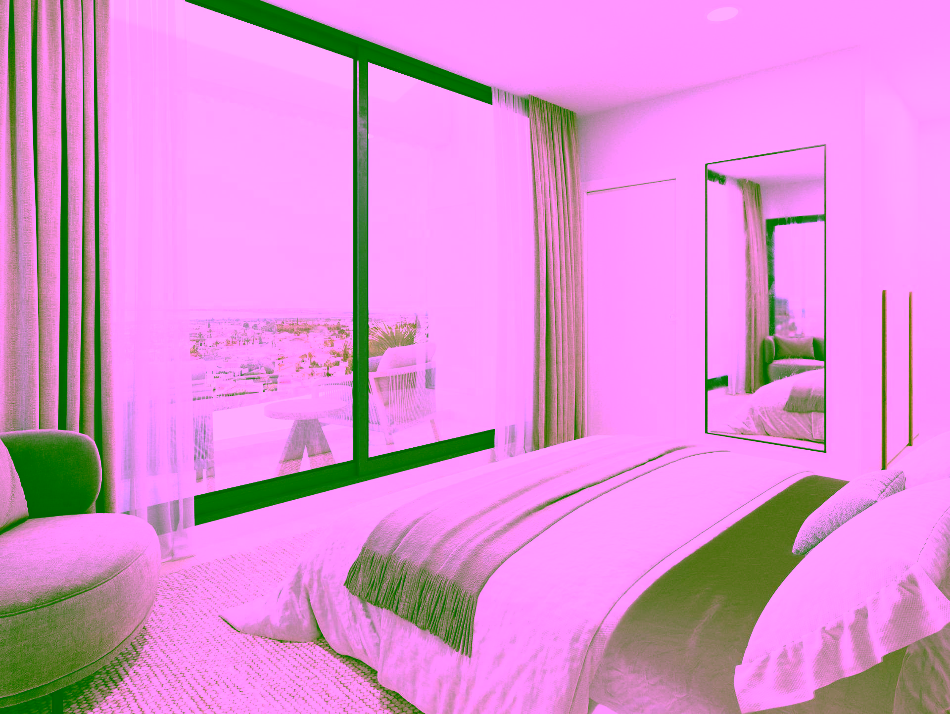 Upper floor with two en-suite bedrooms, each with access to private terraces.