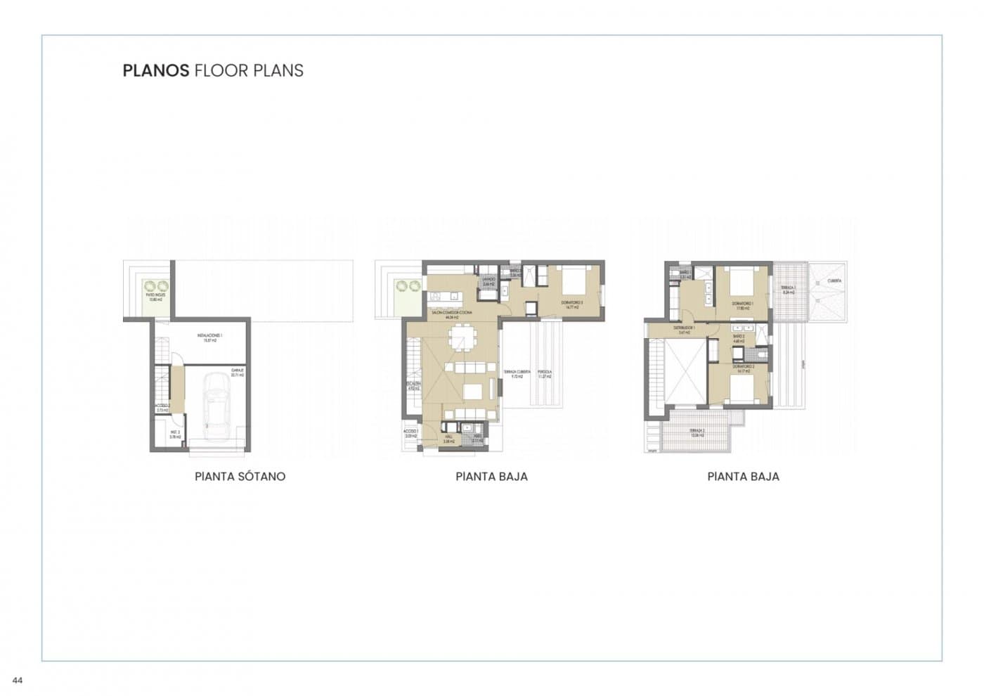 Villas build over 2 floors, has 3 bedrooms, 3 bathrooms, guest toilet, open plan kitchen with lounge, build-in wardrobes, terraces, private garden with the pool and basement with the garage