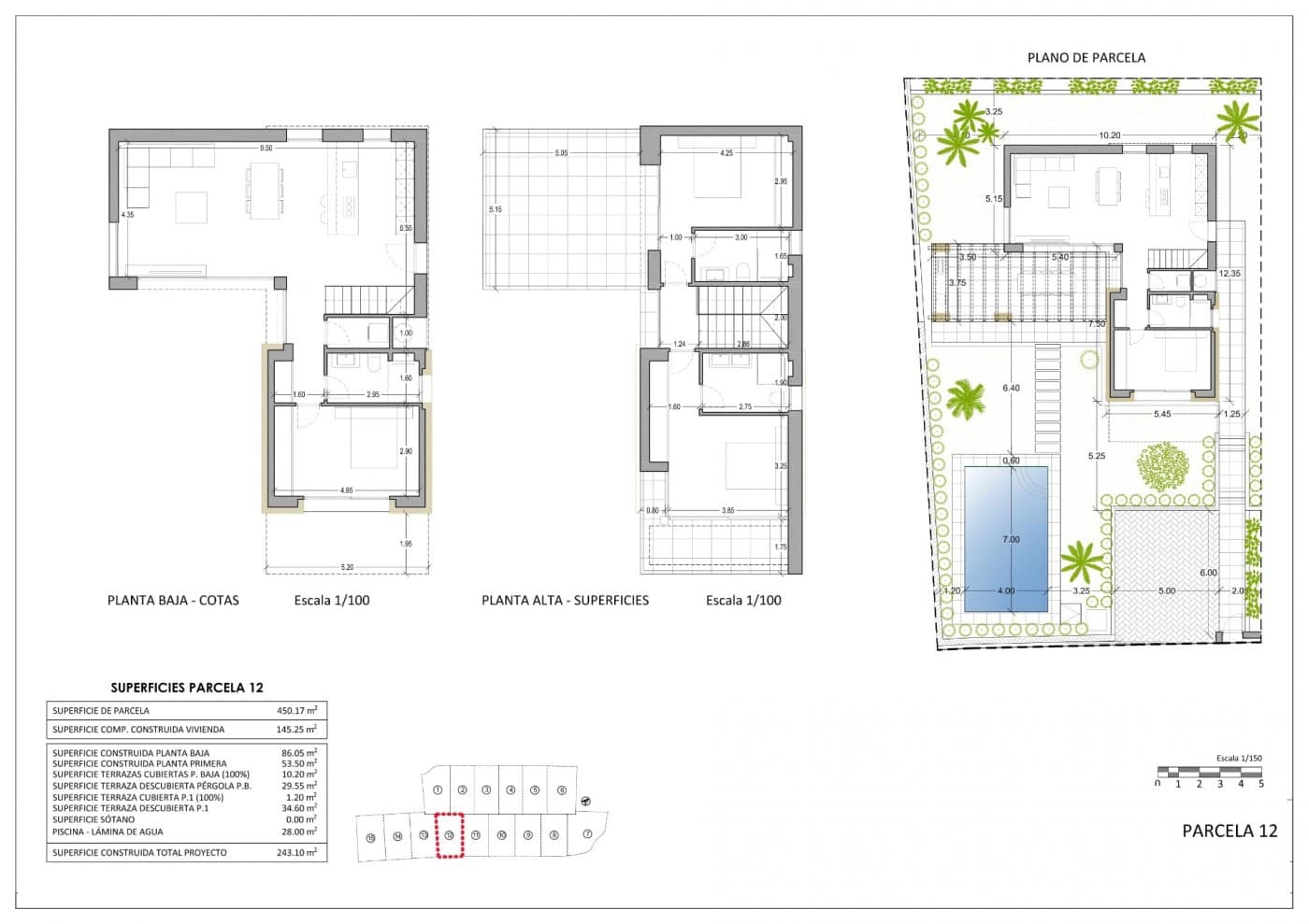 Residential located 5 min by car from all the services that Benidorm can offer and in an environment with an average annual temperature of 20ºC and 300 days of sunshine a year, 44 km away from Alicante airport, 3 km from the sea and 200 meters to the golf.
