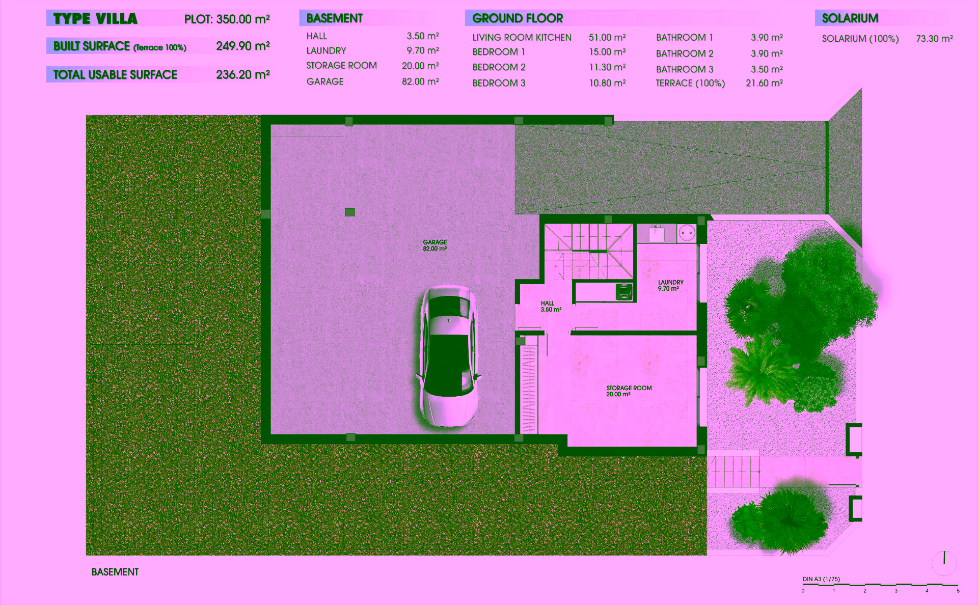 The villas have 3 bedrooms and 3 bathrooms, basement with garage and storage room, private swimming pool and private solarium.