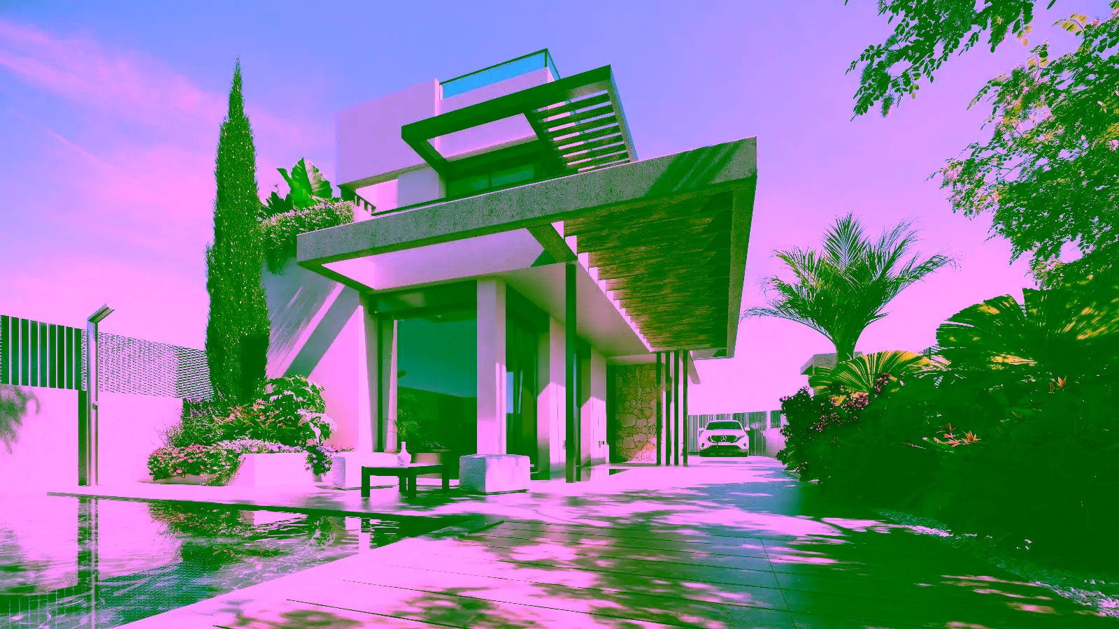 Outside, the fully fenced and professionally landscaped garden ensures privacy while framing the elegant private pool—perfect for cooling off during the warm Costa Cálida summers or enjoying relaxed evenings under the stars. In addition, all villas benefit from a spacious terrace on the first floor, allowing residents to fully embrace the breathtaking views and enjoy the Mediterranean climate in complete comfort. Whether sipping coffee at sunrise or hosting guests at sunset, this elevated space is designed to enhance everyday life.